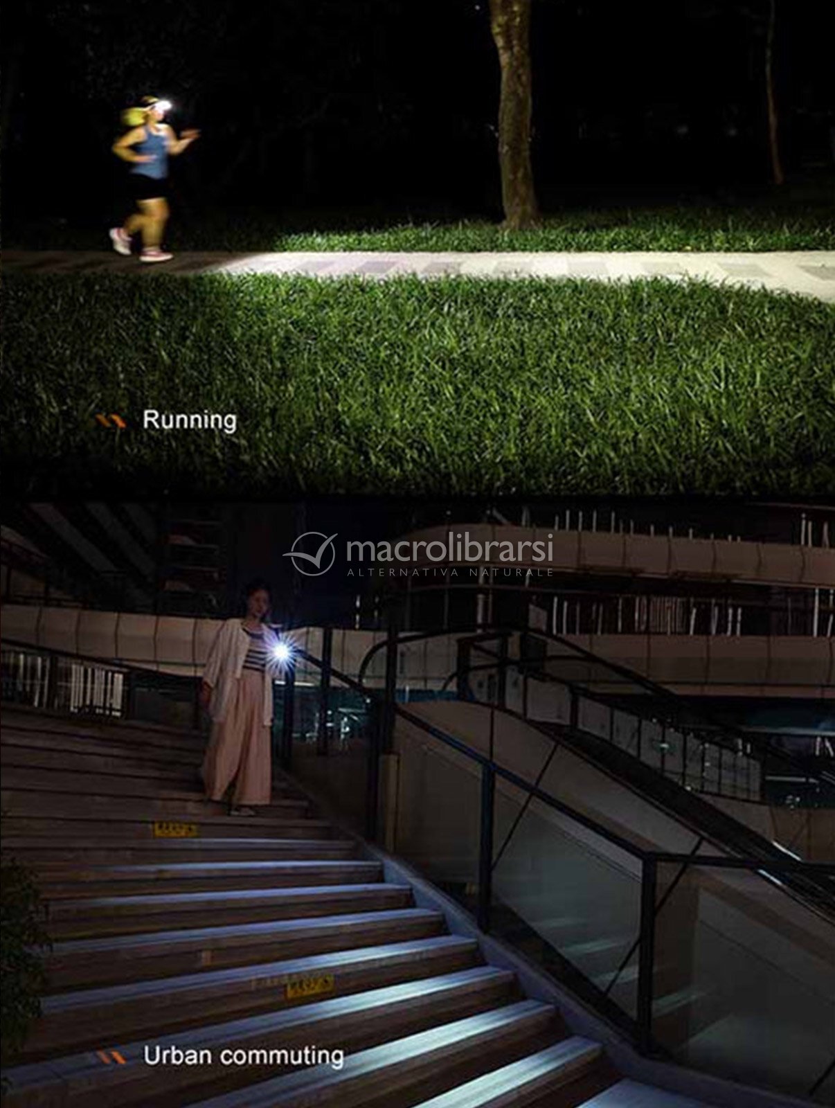 | Confezione | Torcia + batteria integrata da 1000 mAh + fascia testa + cavo di ricarica USB Type-C e clip per il corpo |