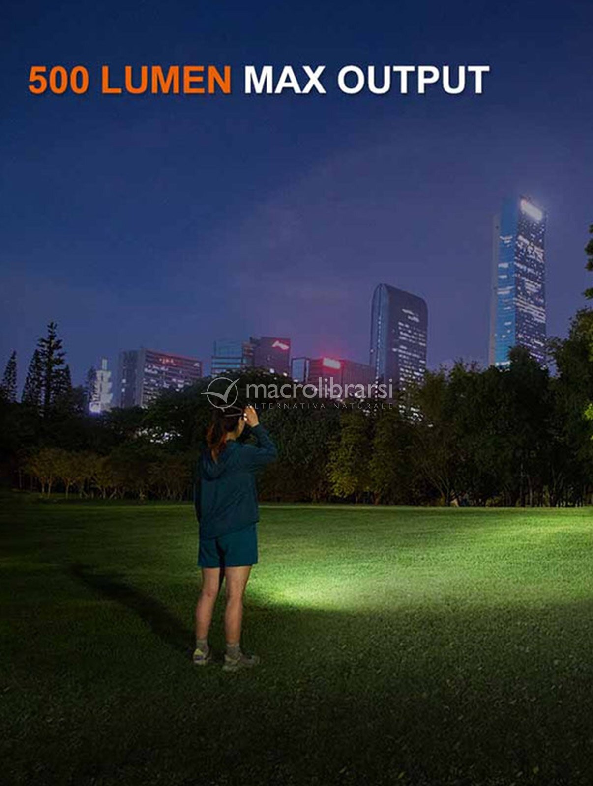 La Fenix HL17R è una lampada frontale compatta e sorprendentemente versatile: in un attimo si trasforma in torcia ad angolo retto o torcia a clip grazie al sistema a sgancio rapido magnetico. Con 500 lumen di potenza, fascio fino a 100 metri, sensore di movimento per l’accensione con un gesto e batteria integrata da 1000 mAh fino a quasi 97 ore di autonomia, è la compagna ideale per spostamenti, campeggio, lavori manuali ed emergenze.