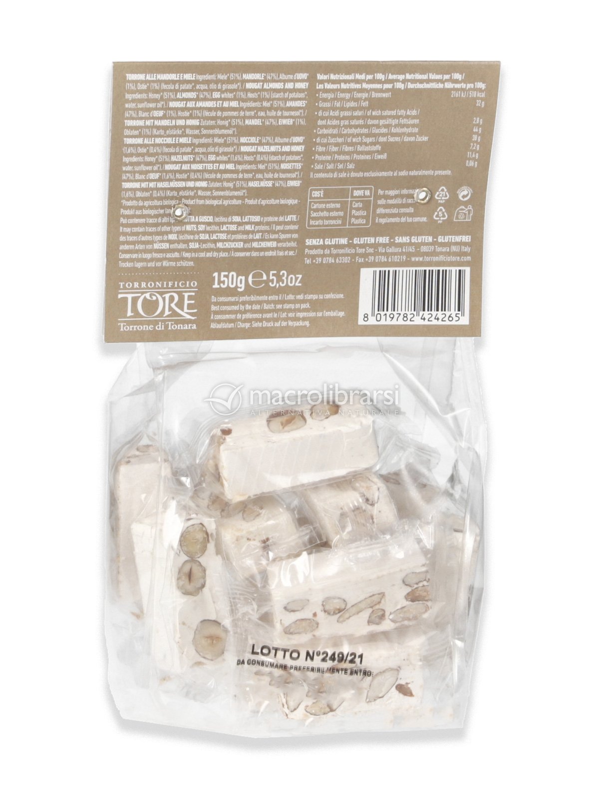 Niente a che vedere con i torroni tossici con sciroppo di glucosio. Questo è veramente fantastico, si sente il VERO sapore del torrone. Peccato che non è più disponibile se no ne compravo altro