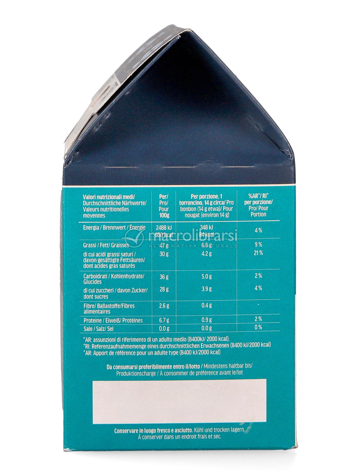 | Allergeni | Contiene LATTE, UOVA e FRUTTA A GUSCIO. Può contenere altra FRUTTA A GUSCIO, SOIA, SESAMO, ARACHIDI e CEREALI CONTENENTI GLUTINE. |