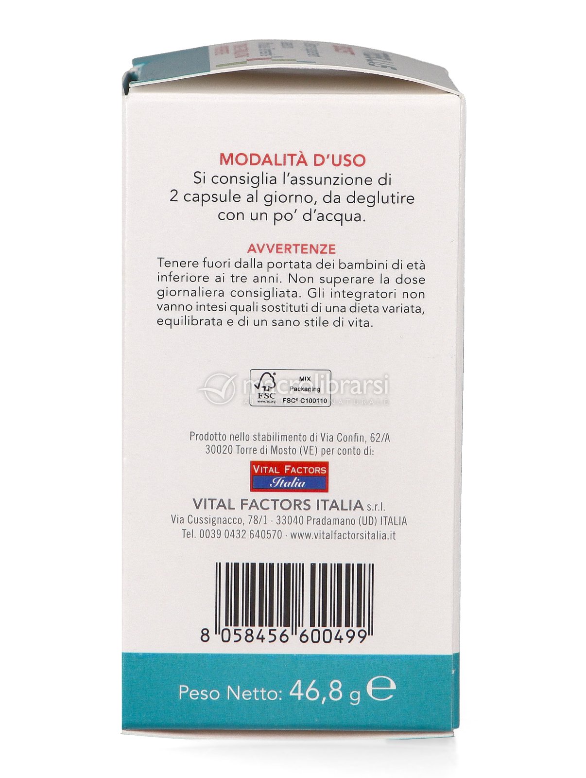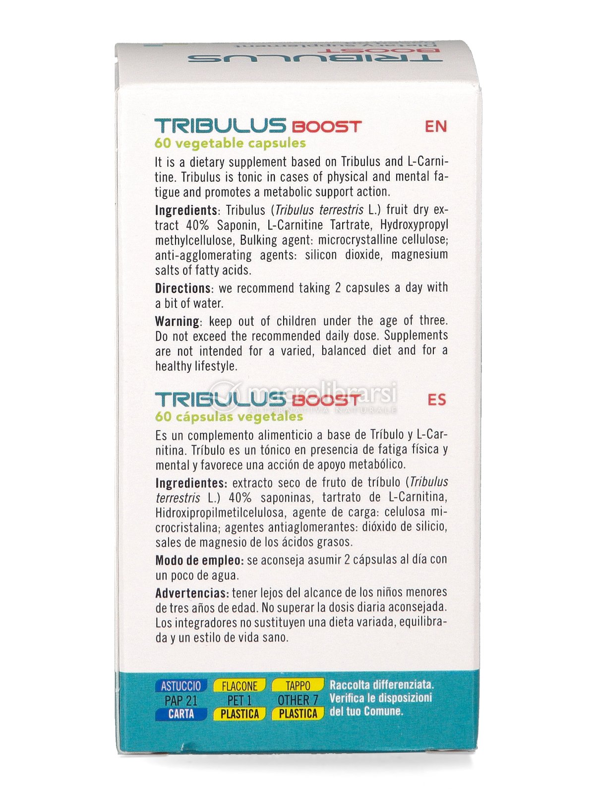 Disclaimer | Non superare la dose giornaliera consigliata. Gli integratori alimentari non vanno intesi come sostituti di una dieta variata ed equilibrata. Tenere fuori dalla portata dei bambini al di sotto dei tre anni. Non utilizzare in gravidanza e nei bambini o comunque per periodi prolungati senza sentire il parere del medico. Conservare in luogo asciutto e lontano da fonti di calore. Richiudere la confezione dopo l'uso. Macrolibrarsi ricorda l'importanza di seguire uno stile di vita sano e un'alimentazione variata ed equilibrata. |