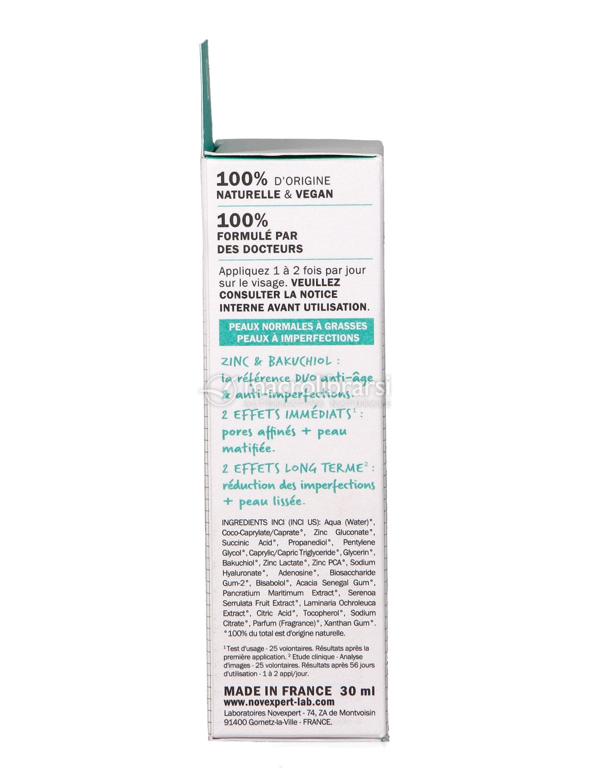 Acido succinico, backuchiol e le tre forme di zinco selezionate dai Medici Novexpert, questo siero offre un'efficacia visibile fin dalle prime settimane: più di 3 persone su 4 osservano una pelle più liscia e opacizzata dopo 28 giorni e una riduzione di imperfezioni e macchie dopo 56 giorni di utilizzo*.