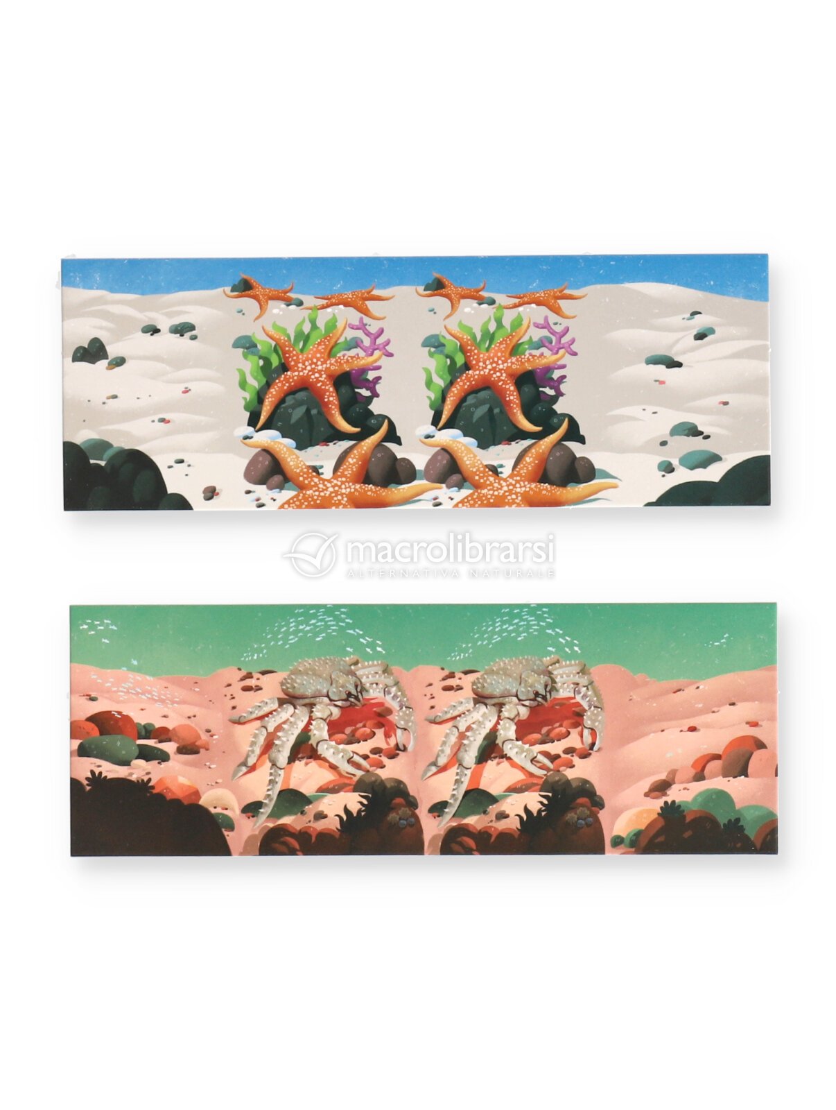 Inserendo le schede degli animali e osservando attraverso le lenti, il lettore si trova immerso in un ambiente ricco di dettagli, dove incontrare lo squalo bianco, la balenottera azzurra e il polpo mimetico.