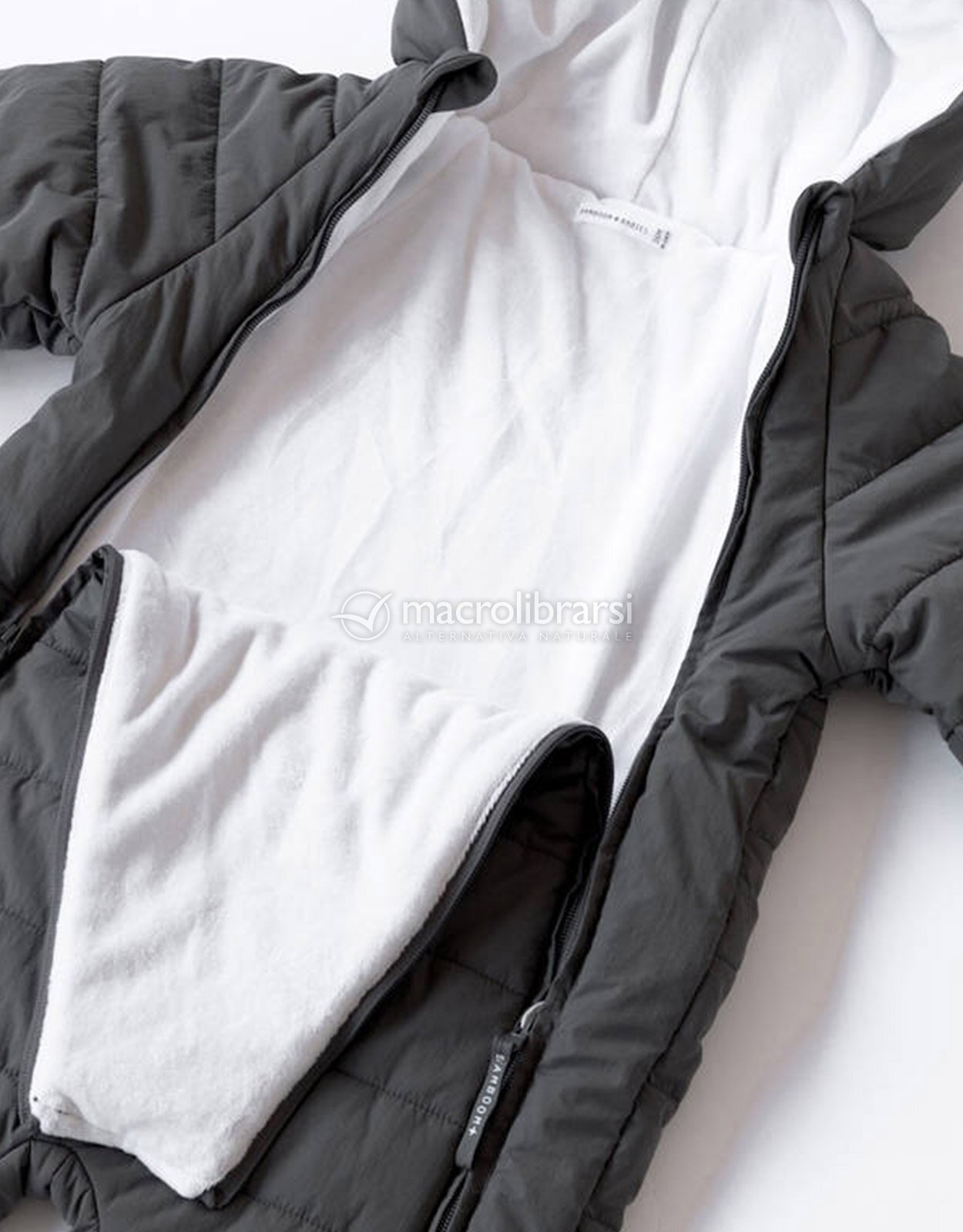 Tuta da neve color antracite, ideale per tenere al caldo il tuo bimbo durante le passeggiate all'aria aperta e le escursioni durante la stagione invernale.