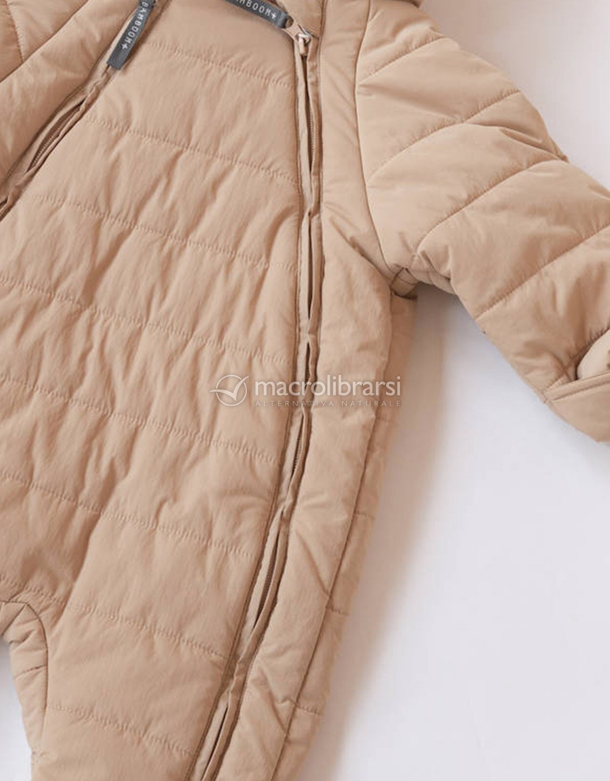 La tuta da neve è una nuova proposta della linea Passeggio di Bamboom, azienda italiana che seleziona materiali ecologici con estrema attenzione e un occhio di riguardo allo stile e al design: i tessuti e i materiali utilizzati sono certificati Oeko-Tex e sono soggetti a severi controlli di qualità.