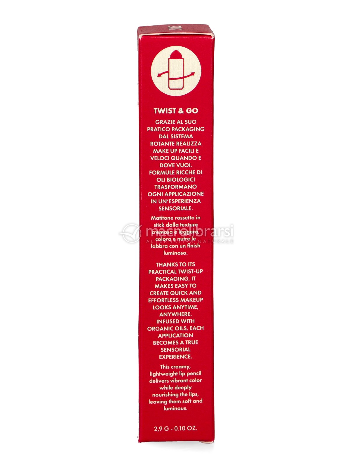 Il matitone rossetto nutriente Twist & Go 505 Rosso Lampone di puroBIO unisce il finish luminoso di un rossetto sheer, semi-coprente, alla morbidezza di un balsamo labbra.