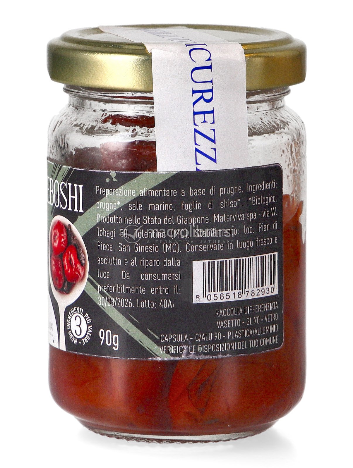 L'Umeboshi di Salvia, preparato con tre soli ingredienti (prugne, foglie di shiso e sale marino integrale), è un prodotto biologico e di elevata qualità, garantito dall'azienda grazie a controlli lungo tutte le fasi della filiera