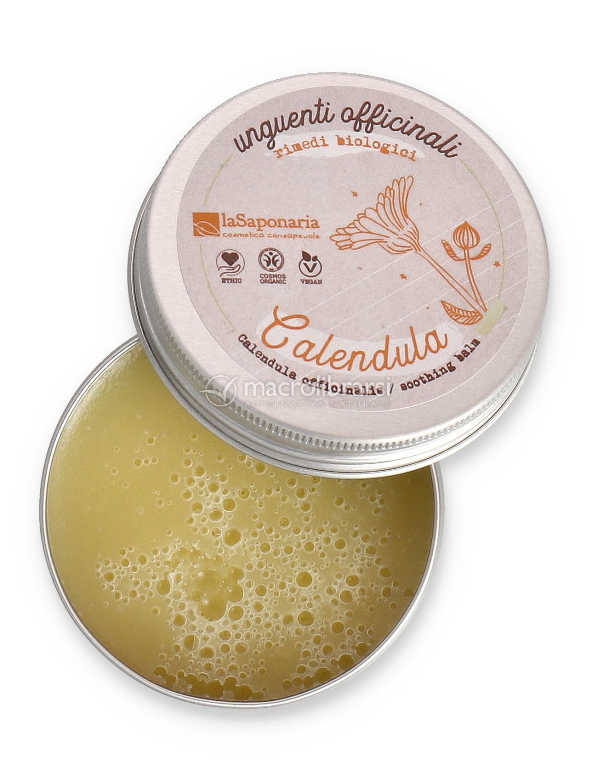 Protagonista di questa ricetta è la Calendula Officinalis, già conosciuta da Greci e Latini grazie al suo potere di esaltare la salute e la naturale bellezza della pelle. La Calendula di questo unguento è coltivata nelle campagne marchigiane e poi raccolta da mani esperte, fiore per fiore, rispettando i giusti tempi botanici della pianta per ottenerne la maggiore concentrazione di attivi. Sono noti da sempre i suoi poteri emollienti e lenitivi, nonché le sue azioni idratanti e ricostituenti per la cute di tutto il corpo.