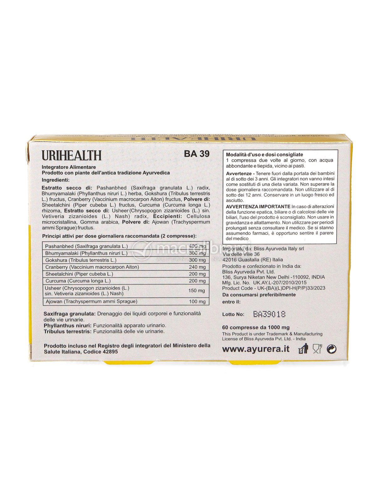 Urihealth di Bliss Ayurveda è un integratore alimentare formulato con estratti secchi e polveri di piante selezionate, utilizzate tradizionalmente per sostenere la funzionalità dell’apparato urinario.