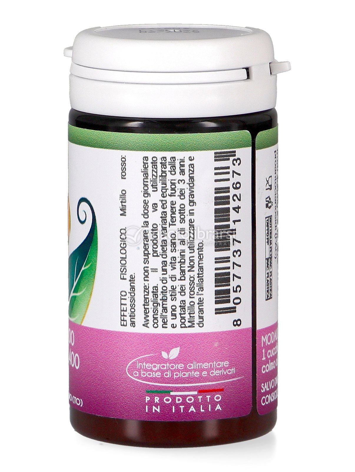 - Mirtillo rosso, fonte di polifenoli e PAC (proantocianosidi) dalle proprietà antiossidanti, è utile per il drenaggio dei liquidi corporei, per la funzionalità delle vie urinarie e del microcircolo, inoltre, favorisce la regolarità del transito intestinale;