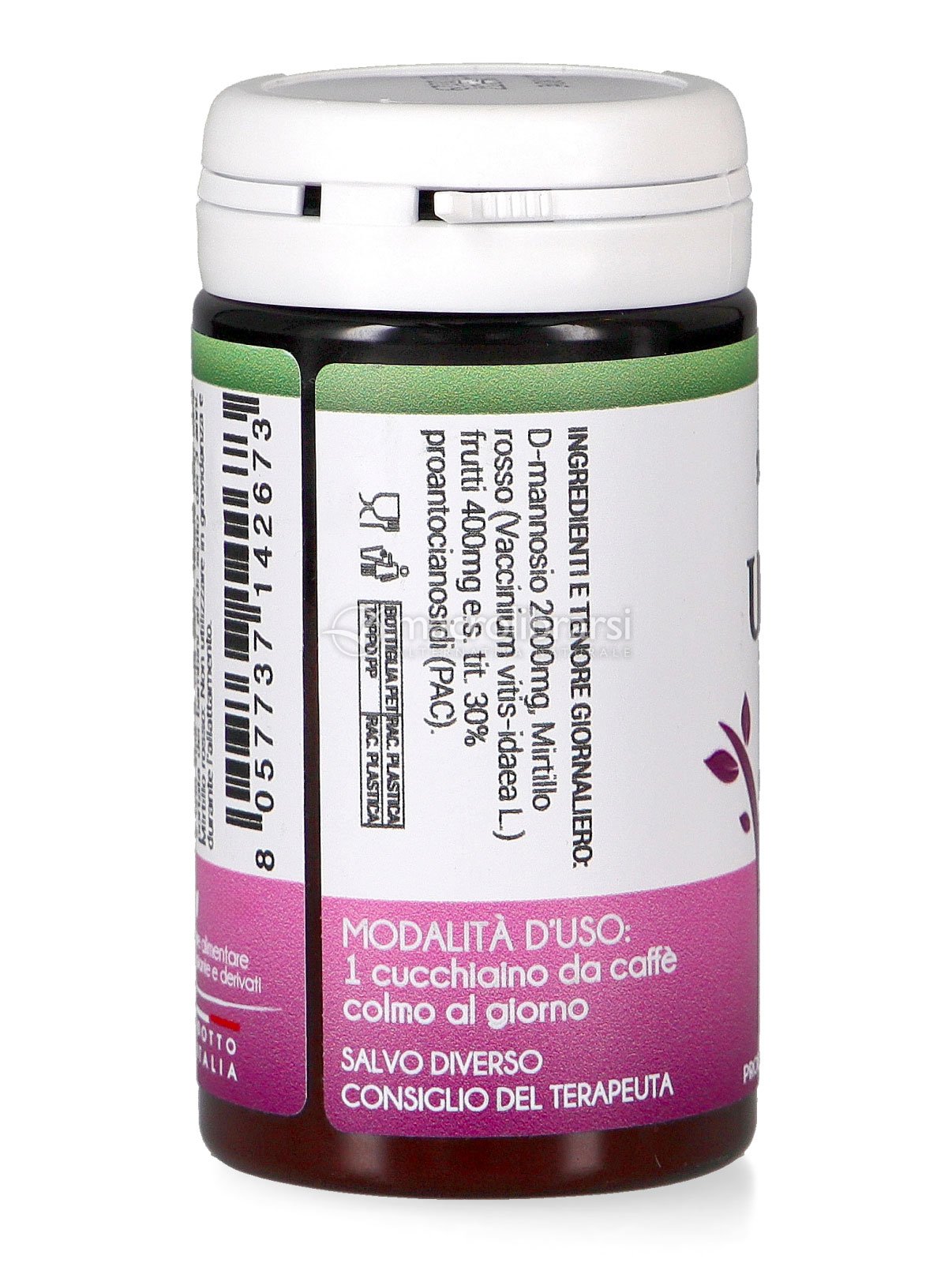 - D-Mannosio, uno zucchero semplice, scarsamente metabolizzato dal corpo, ma che favorisce l'eliminazione dei patogeni attraverso le vie urinarie.