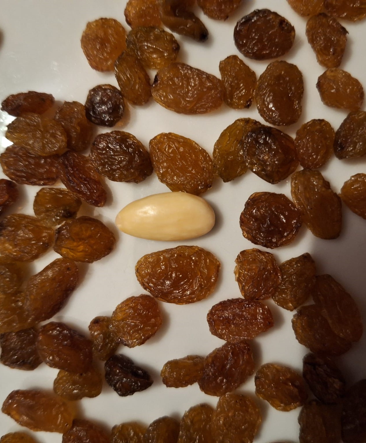 Alla vista l'uvetta si presenza chiara, lucida, molto grande (metto nella foto una mandorla per far vedere le proporzioni) Al tatto è molto morbida e non serve ammorbidirla Al gusto è molto saporita e dolce Io la sto impiegando la mattina nello yogurt magro bianco e mi piace molto. Sono soddisfatta