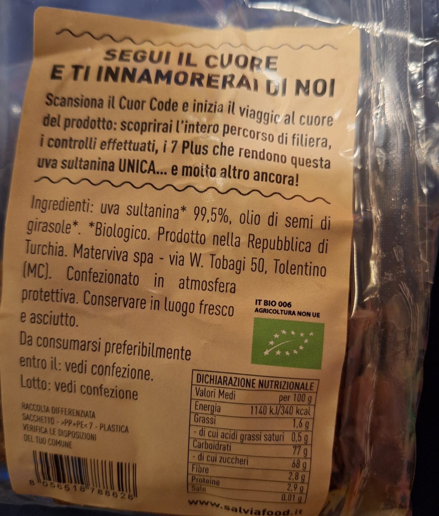 Coltivati in Turchia, l'uva sultanina dell'azienda Salvia è comunque un prodotto in grado di dare certezze e rintracciabile lungo tutta la filiera.