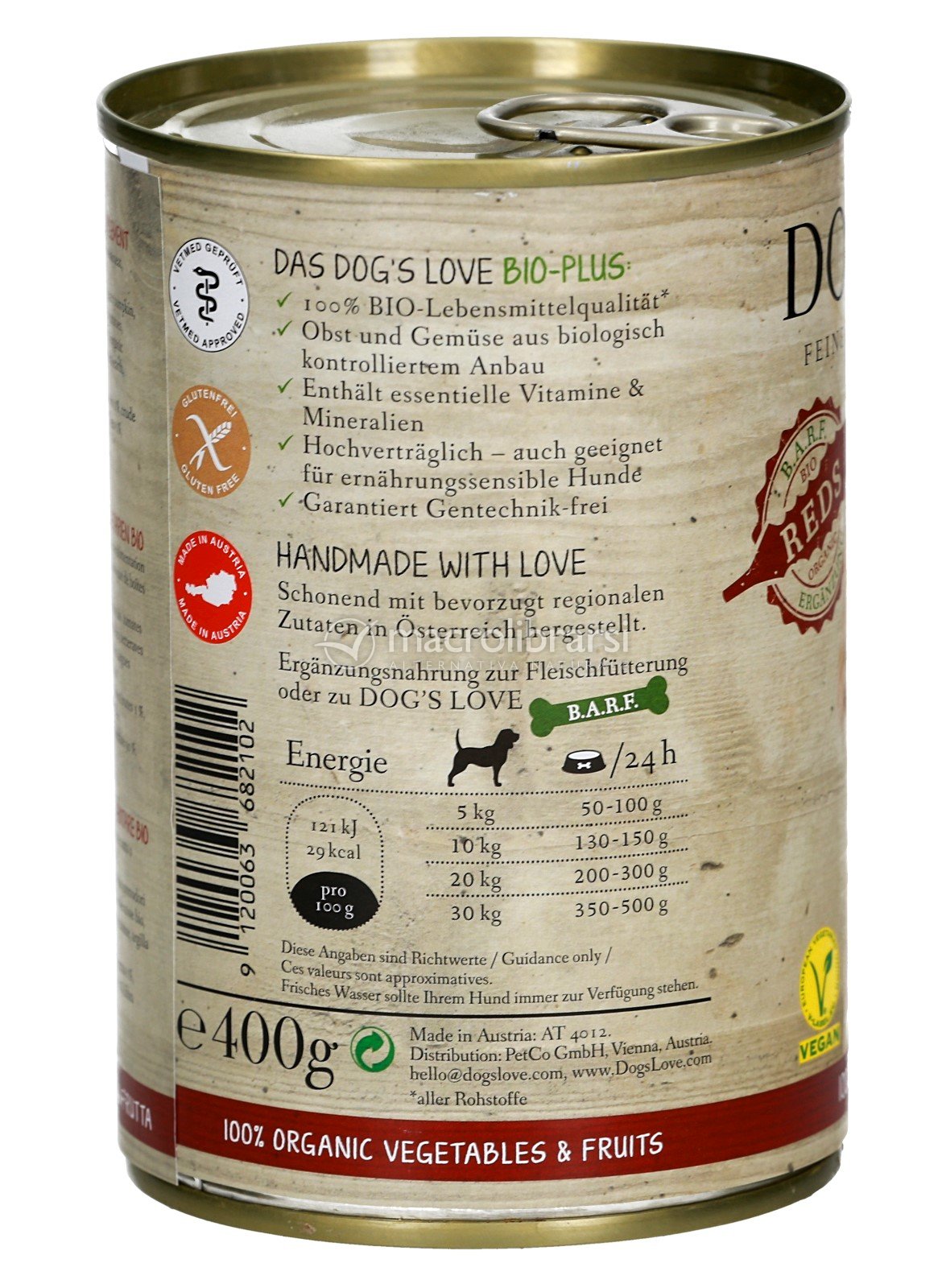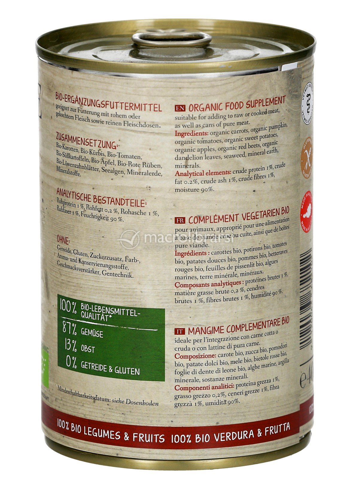 Un alimento totalmente vegetale con frutta e verdura fresche nelle giuste proporzioni per integrare la dieta del tuo cane.