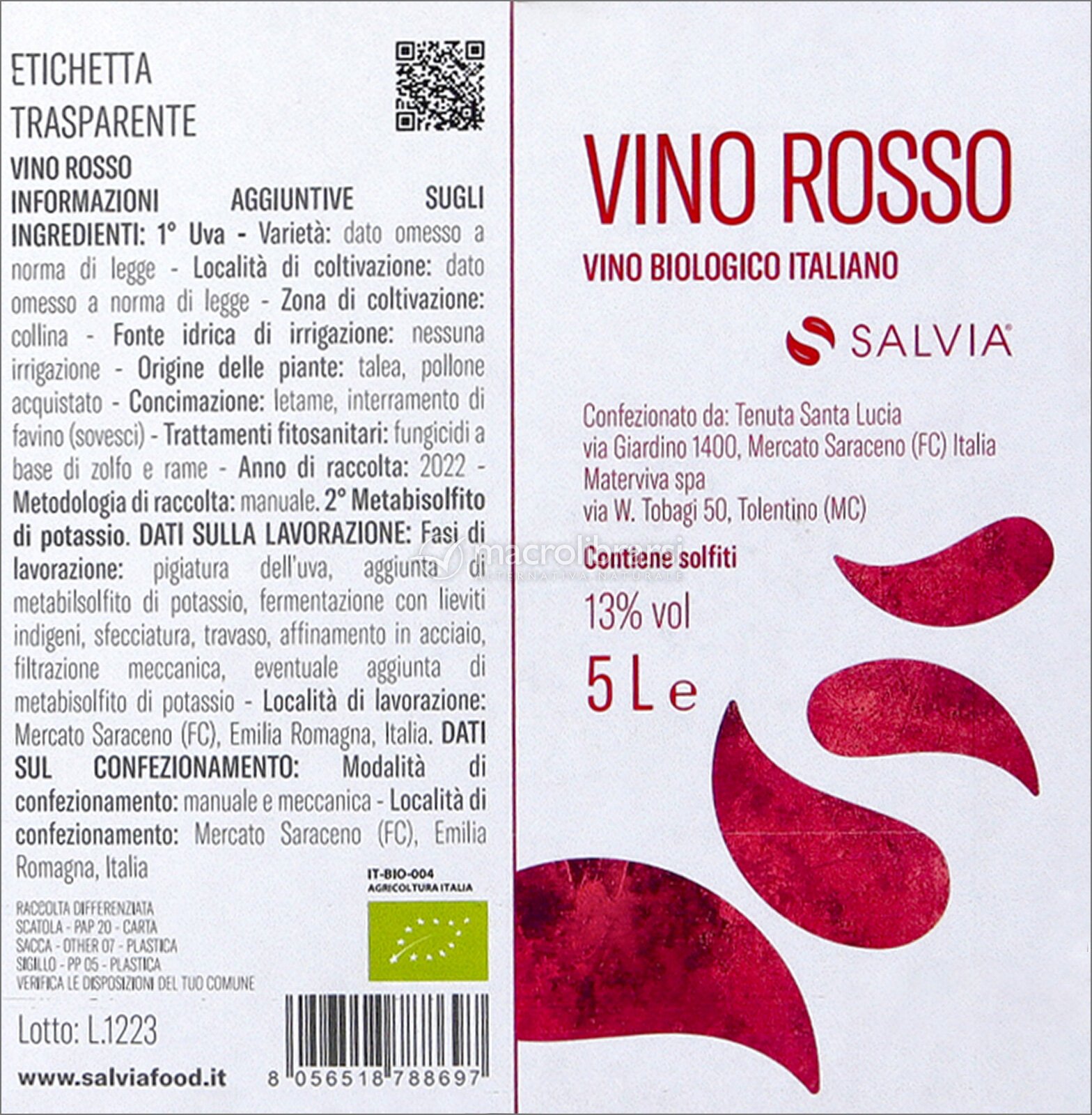 Tutti i prodotti di Salvia sono accompagnati dall'Etichetta Trasparente, ovvero, da un'etichetta che riporta le informazioni relative all’origine e alle caratteristiche delle materie prime, alle lavorazioni, al confezionamento, per: