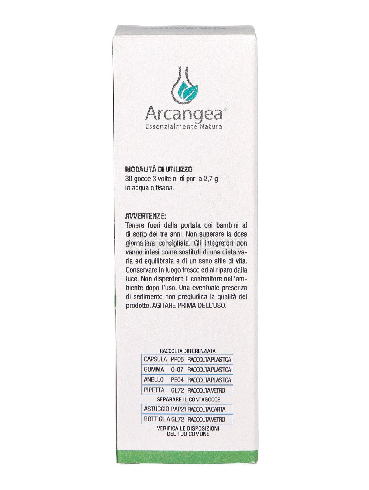 | Avvertenze | Tenere fuori dalla portata dei bambini al di sotto dei tre anni. Non superare la dose giornaliera consigliata. Gli integratori non vanno intesi come sostituti di una dieta varia ed equilibrata e di un sano stile di vita. Conservare in luogo fresco ed al riparo dalla luce. Non disperdere il contenitore nell'ambiente dopo l'uso. Una eventuale presenza di sedimento non pregiudica la qualità del prodotto. AGITARE PRIMA DELL'USO. |