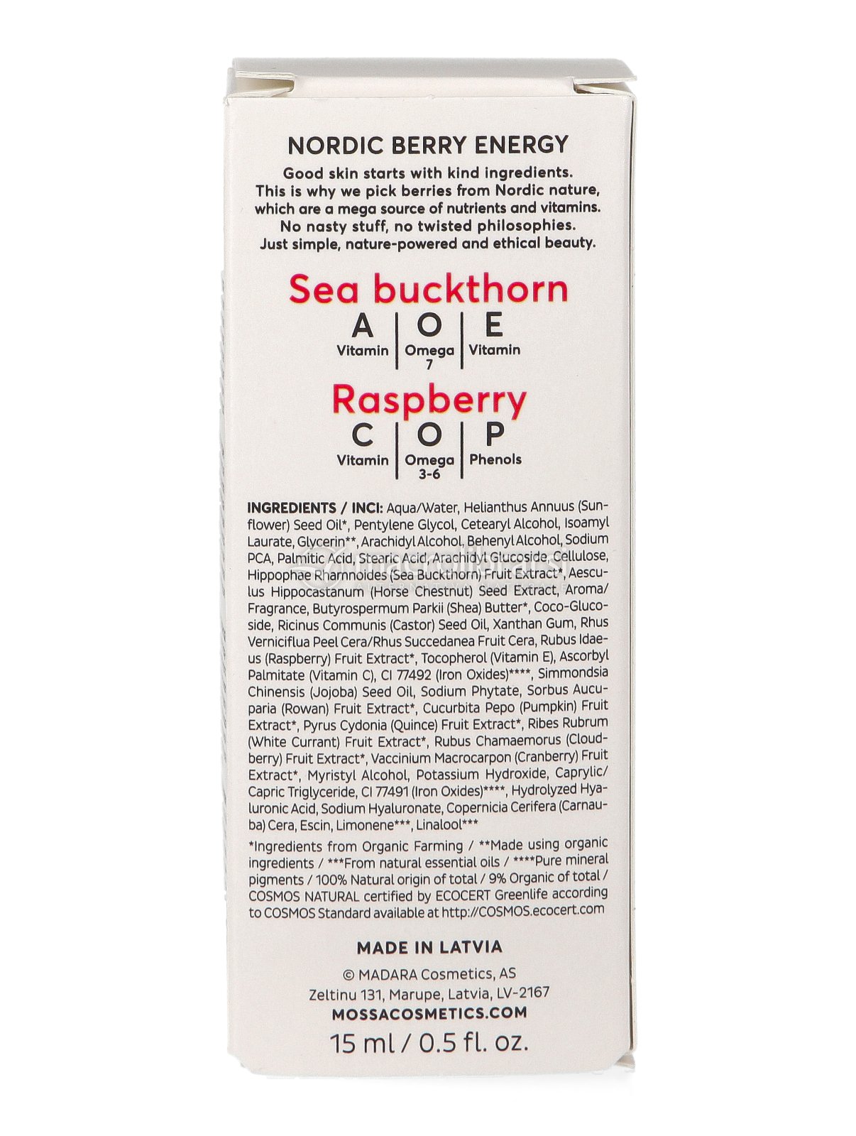 Gli attivi botanici ad azione drenante aiutano a rinforzare i capillari riducendo il gonfiore e le occhiaie, l’acido ialuronico multi-molecolare minimizza le linee sottili e la disidratazione, mentre l’olivello spinoso e le vitamine del lampone donano luminosità e splendore.