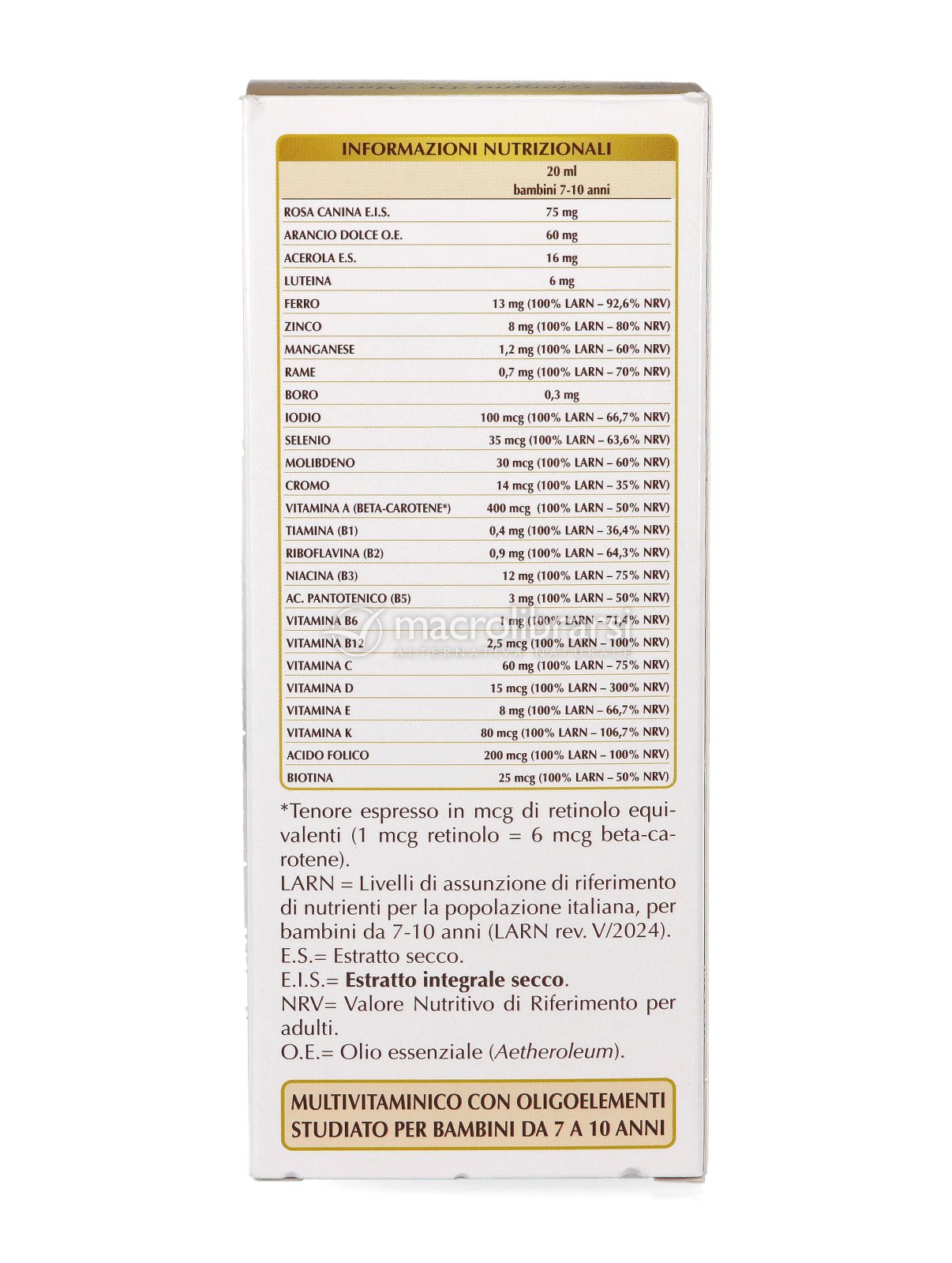 Vitamine e minerali con Rosa canina, Acerola e Luteina per bambini dai 7 ai 10 anni
