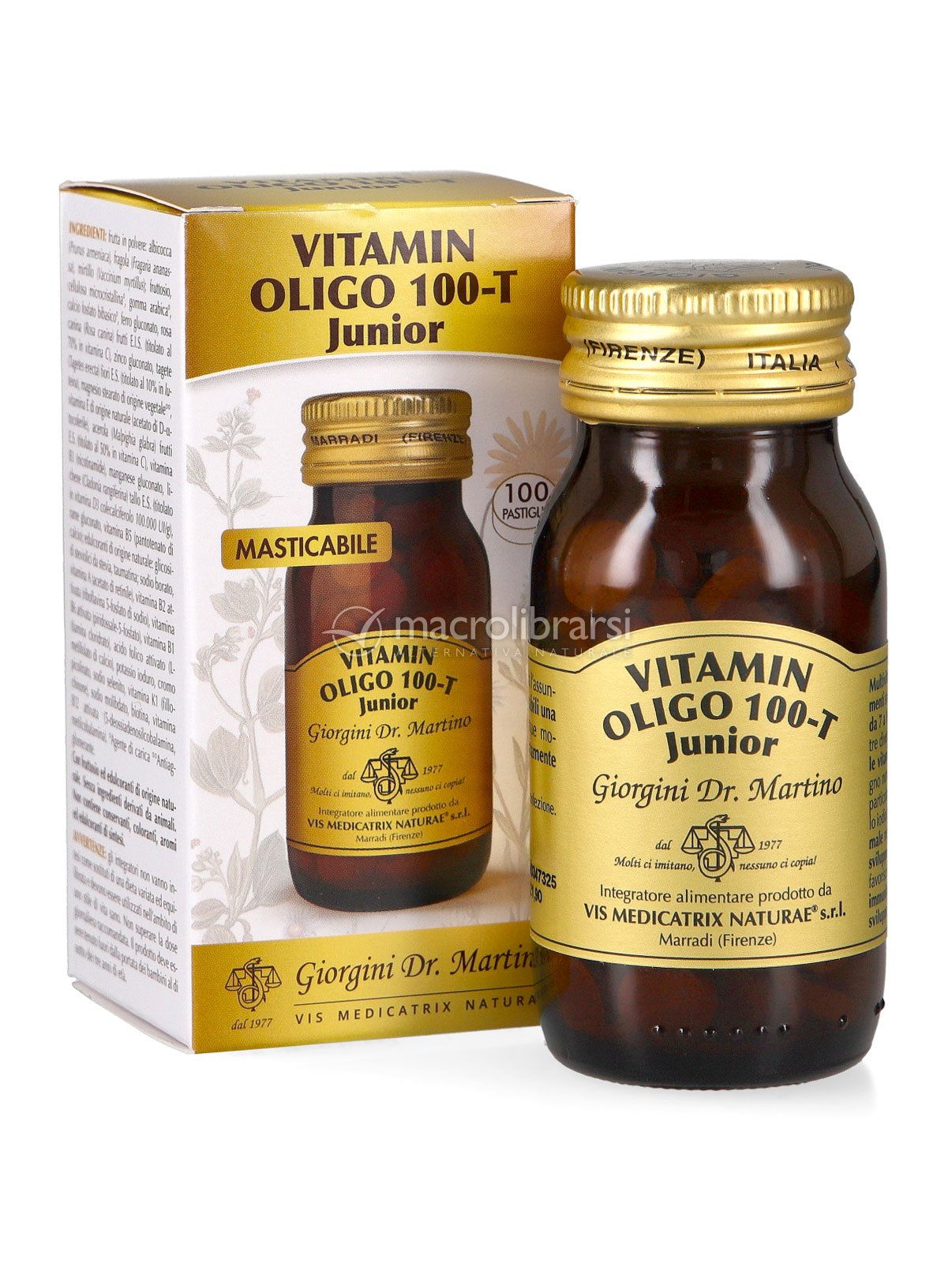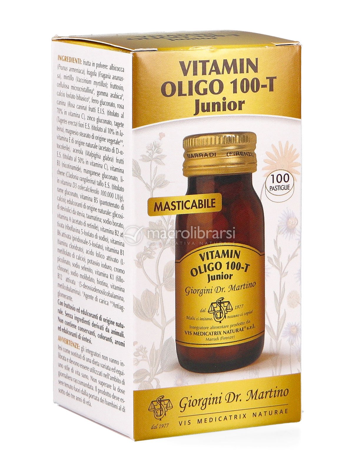 Vitamin Oligo 100-T Junior di Giorgini Dr. Martino è un integratore multivitaminico arricchito con Acerola (fonte naturale di vitamina C) e Luteina, dal ruolo antiossidante.