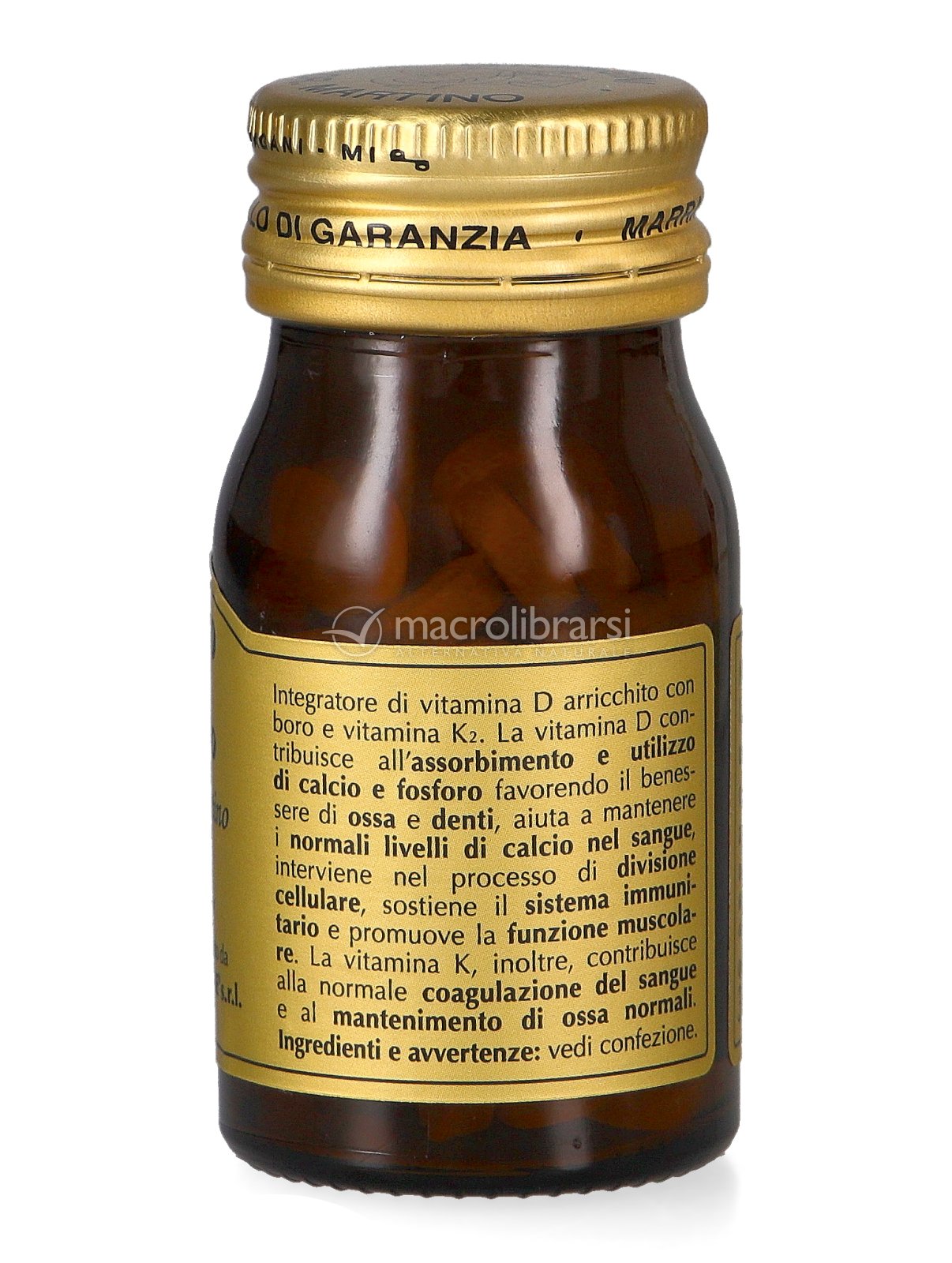 La vitamina K, in particolare la K2, e il Boro coadiuvano la funzione della vitamina D e l'assorbimento del calcio, contribuendo alla normale coagulazione del sangue e al mantenimento di ossa normali.