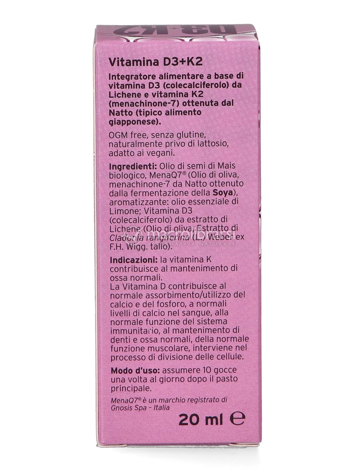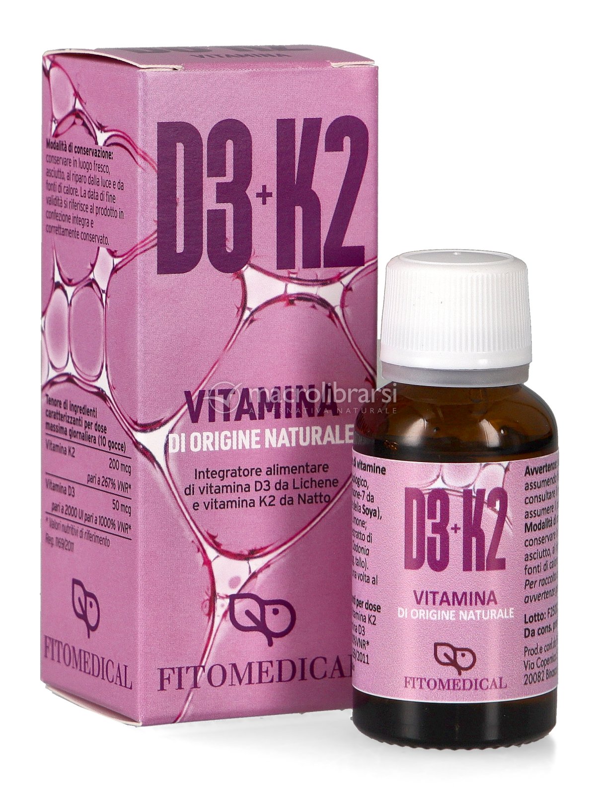 Vitamina D3 + K2 naturale di Fitomedical è un integratore in gocce, vegan e senza glutine, pensato per sostenere il benessere generale in caso di carenze nutrizionali o aumentato fabbisogno. Contiene: