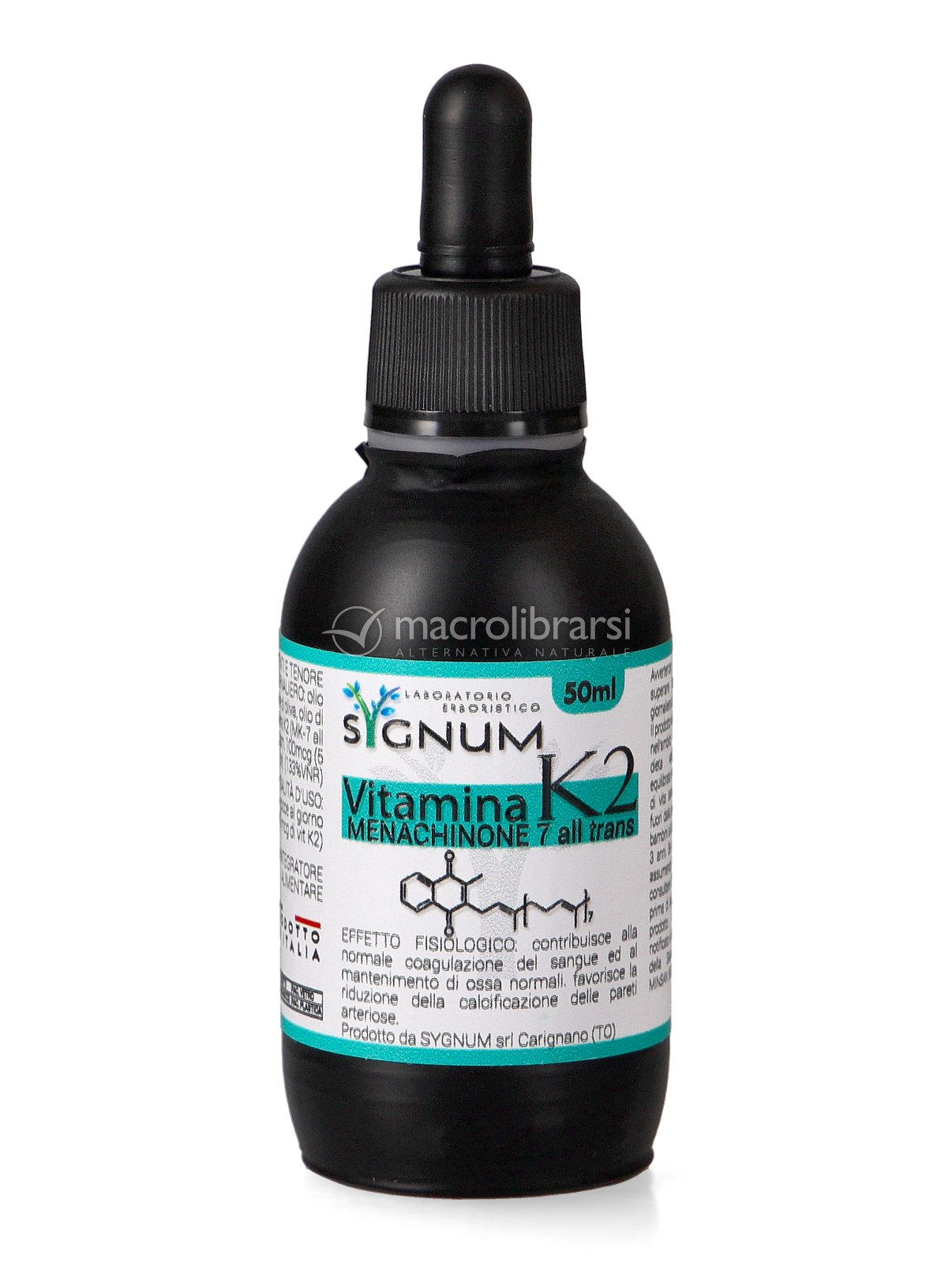 | Note | Note del produttore: "La nostra vitamina K2 è una sostanza ottenuta per fermentazione batterica da legumi e purificata. Non sono presenti tracce di allergeni derivanti dalla materia prima d'origine. E' contenuta in un olio veicolo composto dalla miscela di olio extravergine di oliva e olio di cocco. La diversa composizione di acidi grassi a diverse lunghezze migliora l'assorbimento intestinale della vitamina K2." |