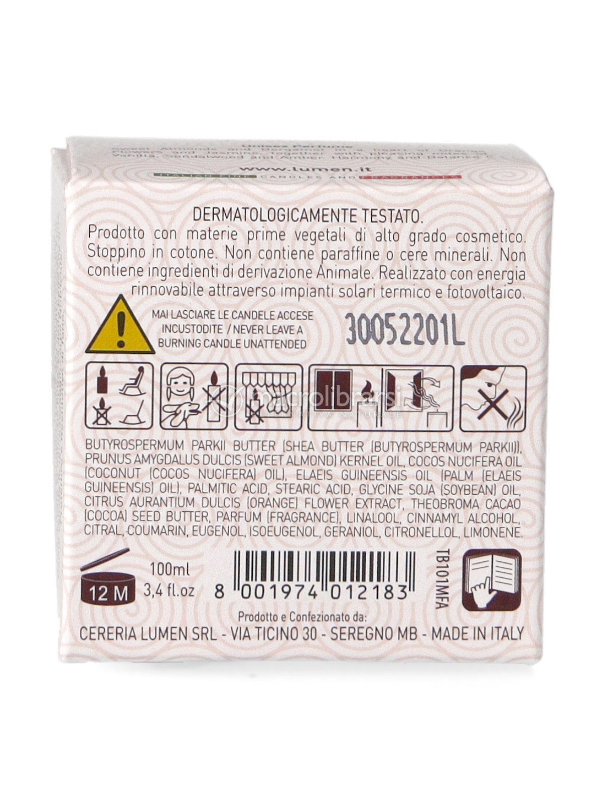 Ottima candela da massaggio, piccolina ma che appena accesa inebria la stanza con il suo profumo dolce e persistente... Ne basta poca per fare un bel massaggio, l'unico problema riscontrato (solo su di me) è che mi provoca uno sfogo di brufolini sul corpo dopo l'utilizzo, probabilmente perché troppo ricca per la mia pelle.