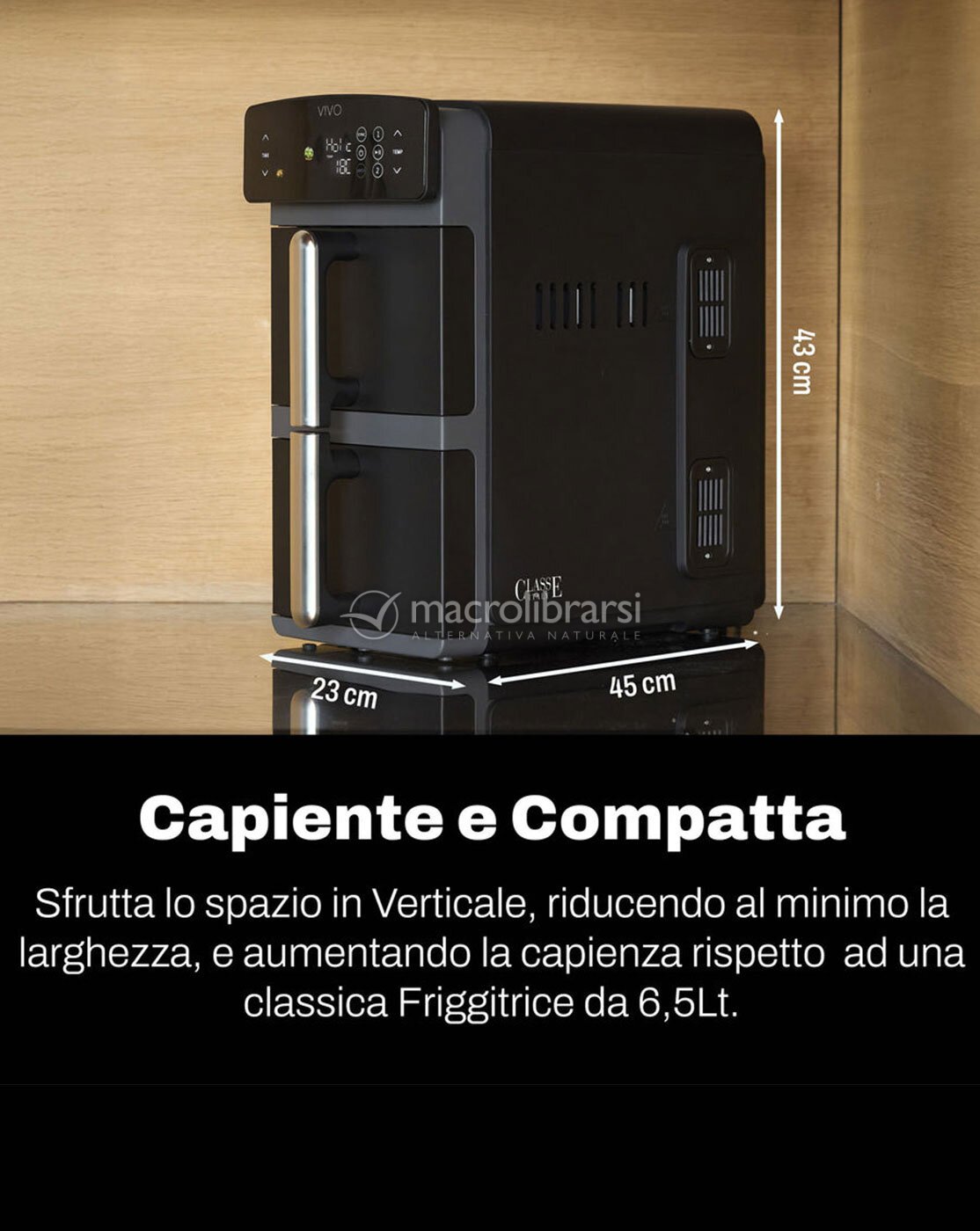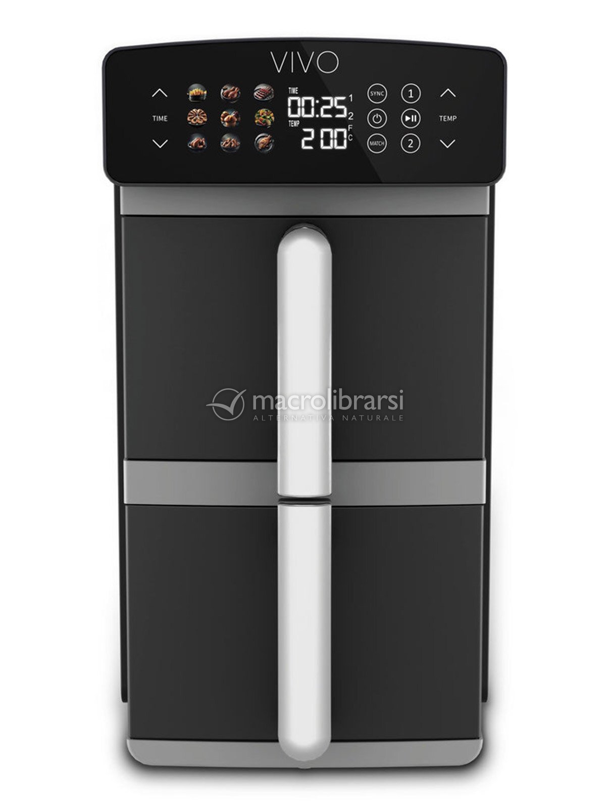 | Confezione | VIVO Air Fryer Double Stack 11 lt + 2 griglie in acciaio sovrapponibili + 2 piastre crisp + manuale d'uso |