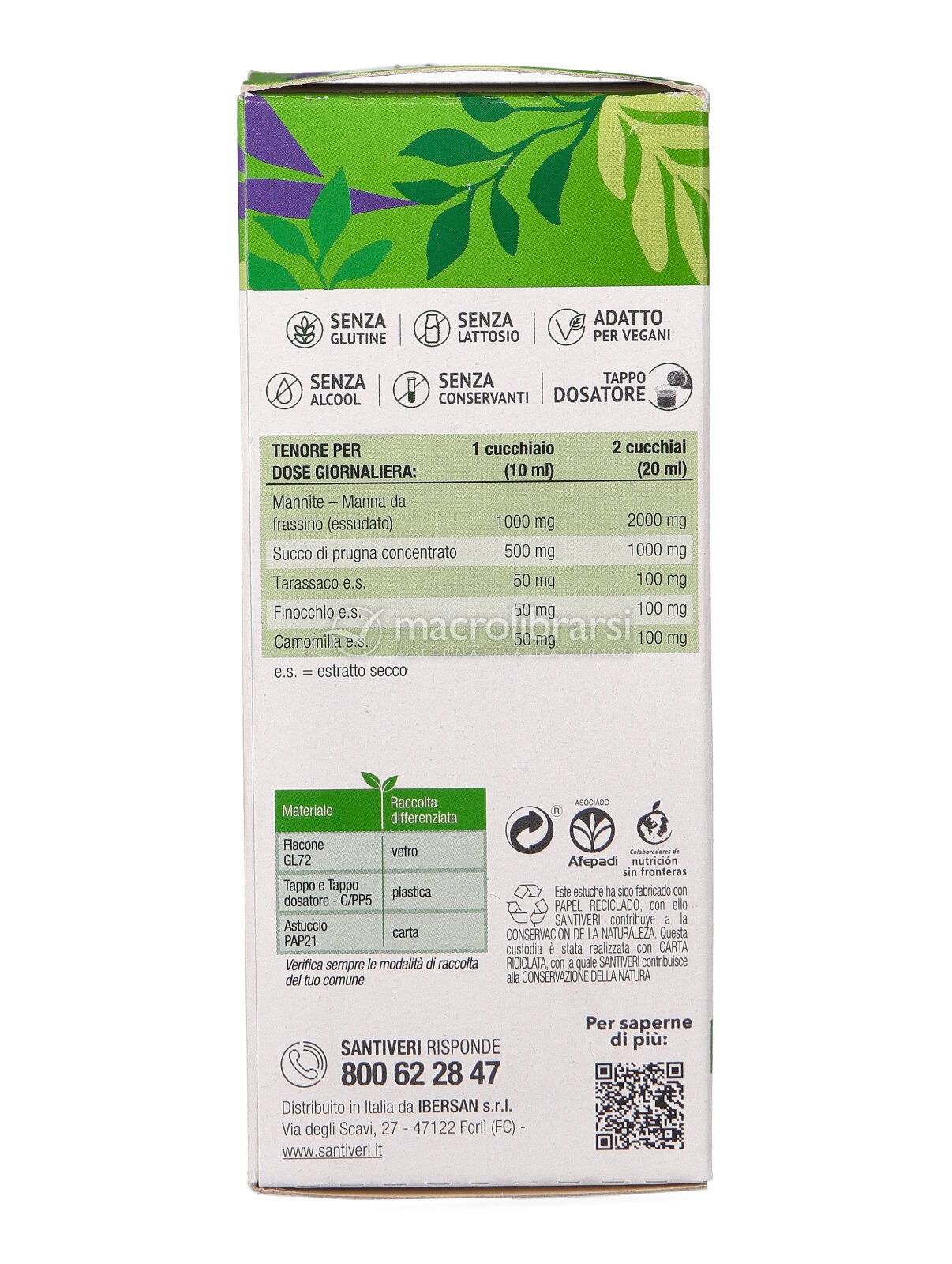 Contiene Mannite, ricavata dalla manna di Frassino, che favorisce il normale volume e consistenza delle feci. Assieme a Prugna ed estratti secchi di Tarassaco, che supportano la regolarità del transito intestinale.