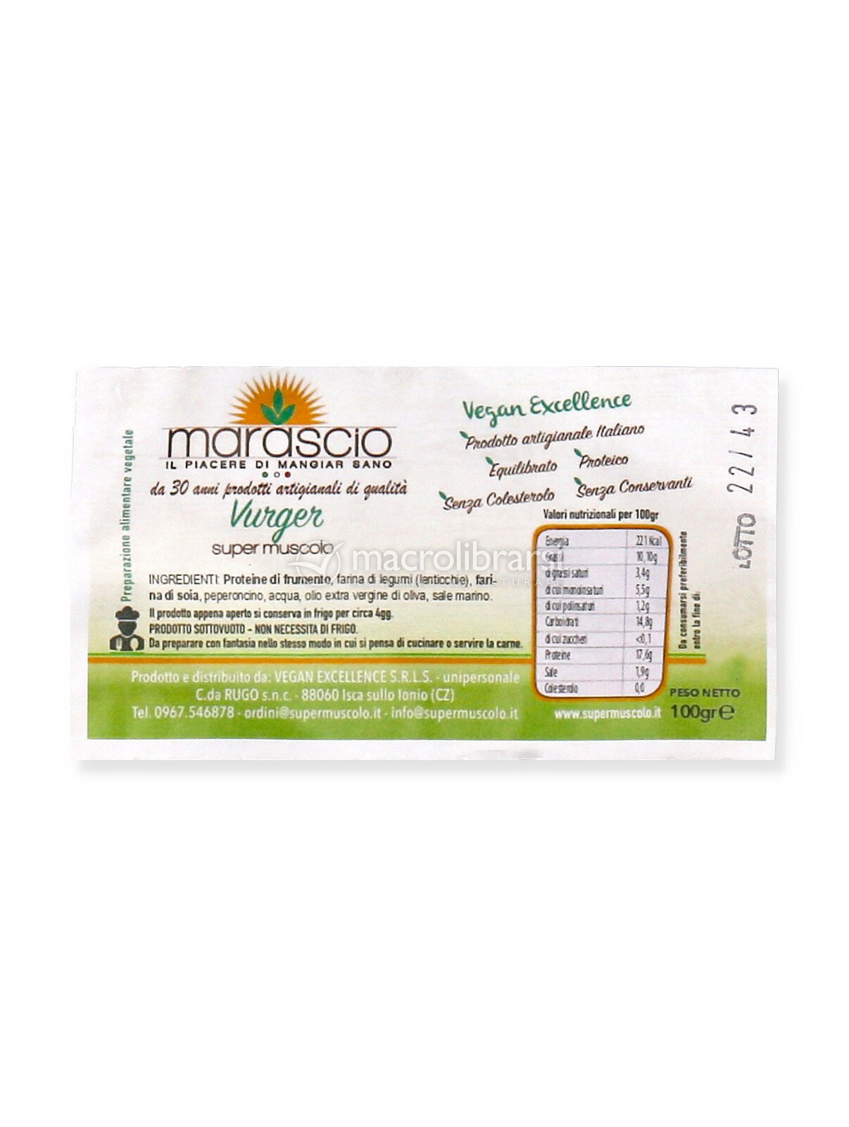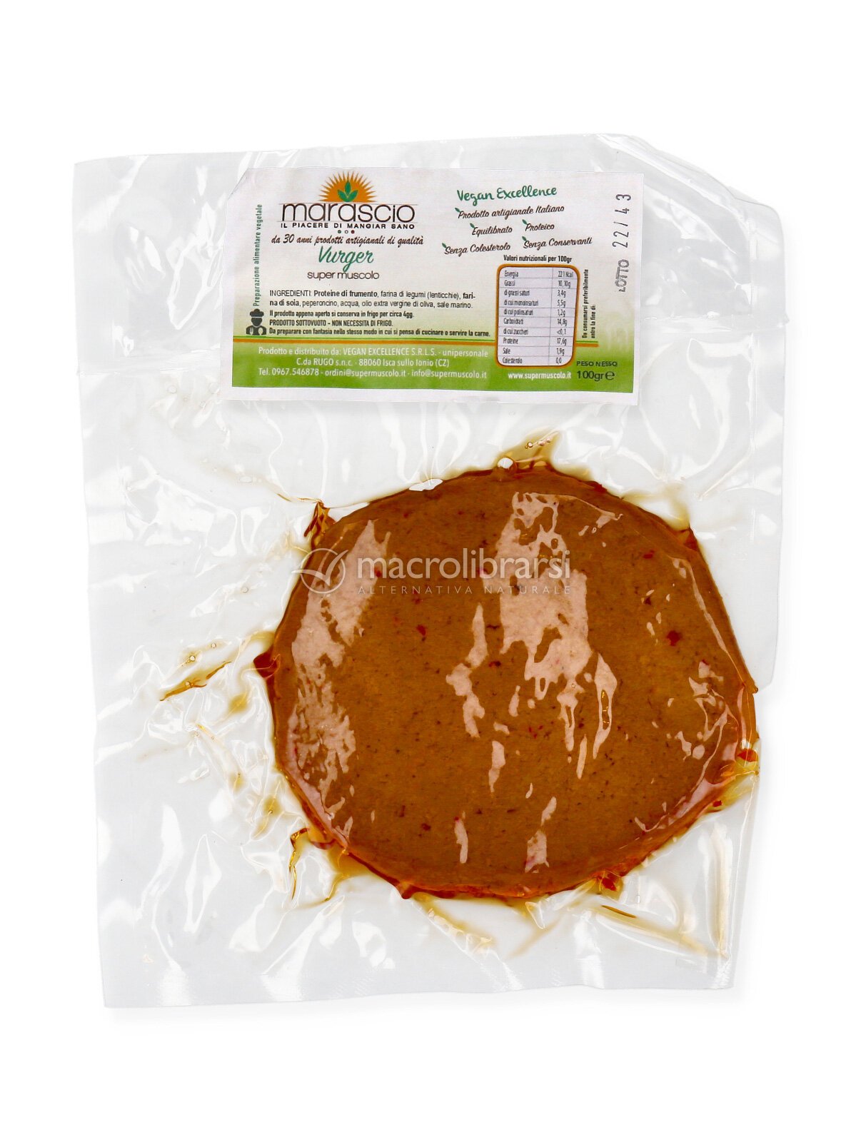 Il Vurger vegetale è un alimento preparato con proteine del frumento, lenticchie, soia, peperoncino e condito con olio extravergine d'oliva e sale marino.