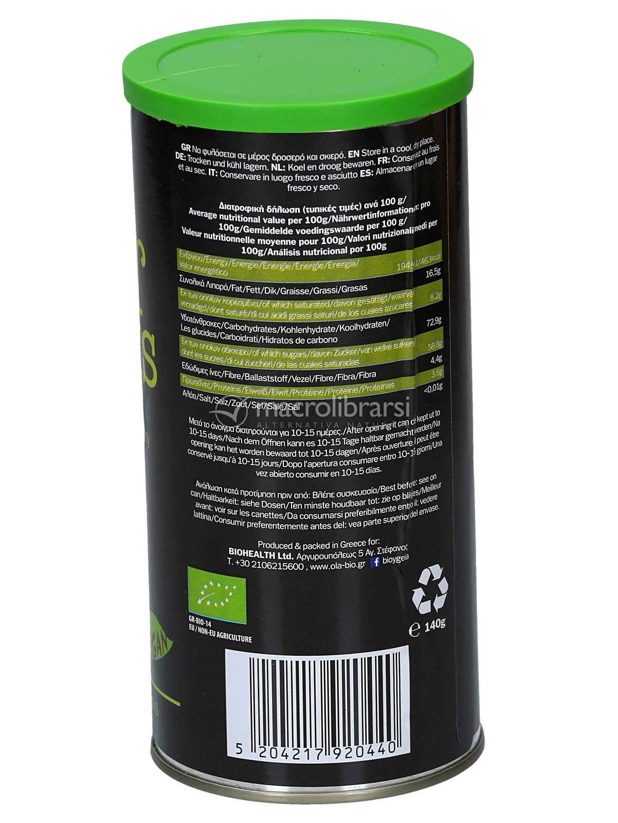 Zucchero di canna*, farina di grano tenero*, olio di cocco cacao magro in polvere* 6%, amido di mais*, proteine dei piselli, cioccolato* 1% (massa di cacao*, zucchero*, burro di cacao* emulsionante: lecitina di soia*), sciroppo di glucosio, emulsionante lecitina di soia, aroma naturale di vaniglia, vaniglia in polvere*, sale. *Biologico
