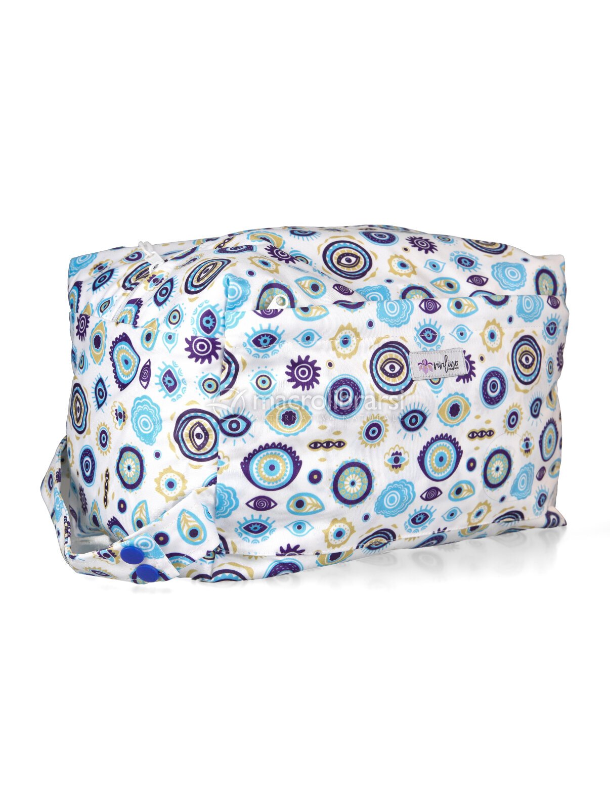Pensata per i pannolini lavabili (ne può contenere tranquillamente 8!), è utile in mille situazioni in casa e fuori. Può infatti essere utilizzata per riporre cambi, mussole, telini e tutto quello che ti viene in mente.