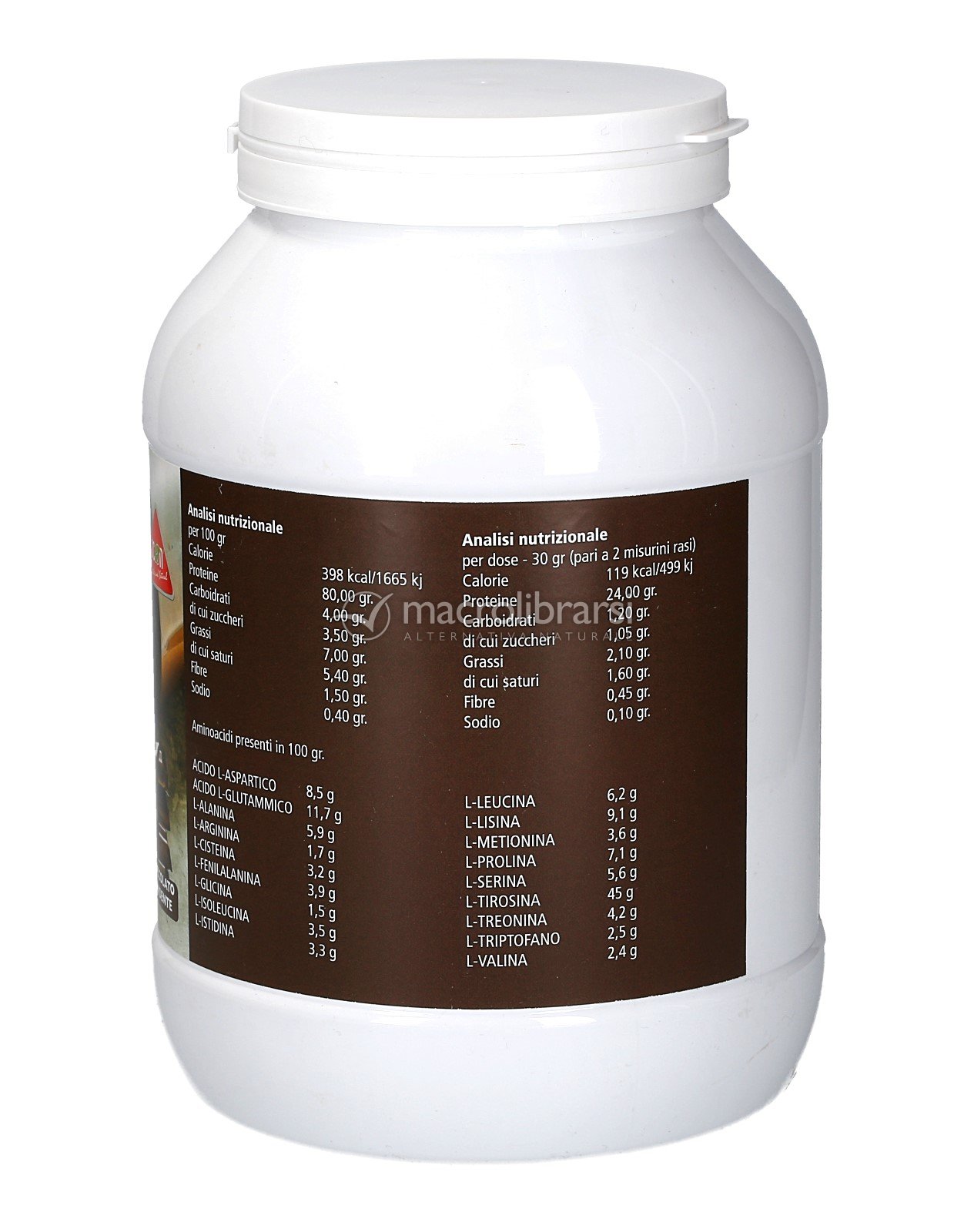 È composto da proteine del siero del latte concentrate, cacao amaro, dolcificate con sucralosio.