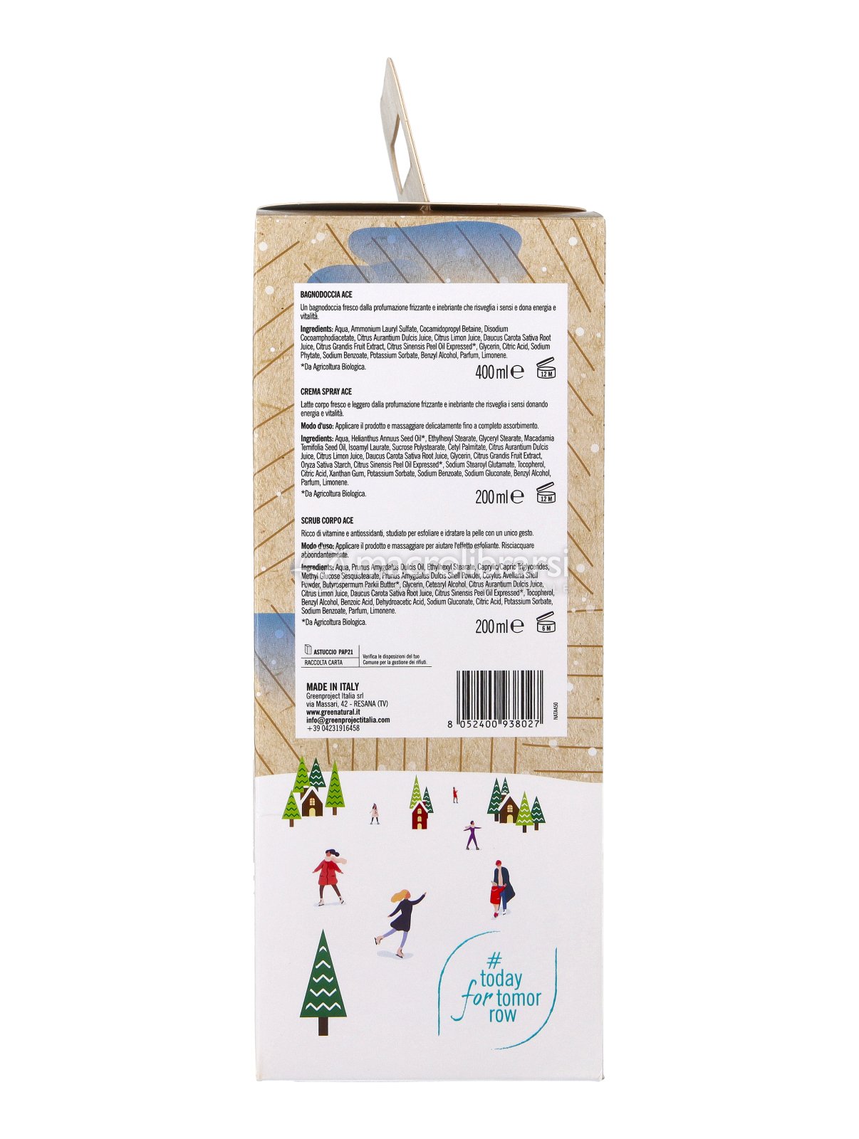 | Confezione | Bagnodoccia ACE 400 ml + Crema spray ACE 200 ml + Scrub Corpo ACE 200 ml |