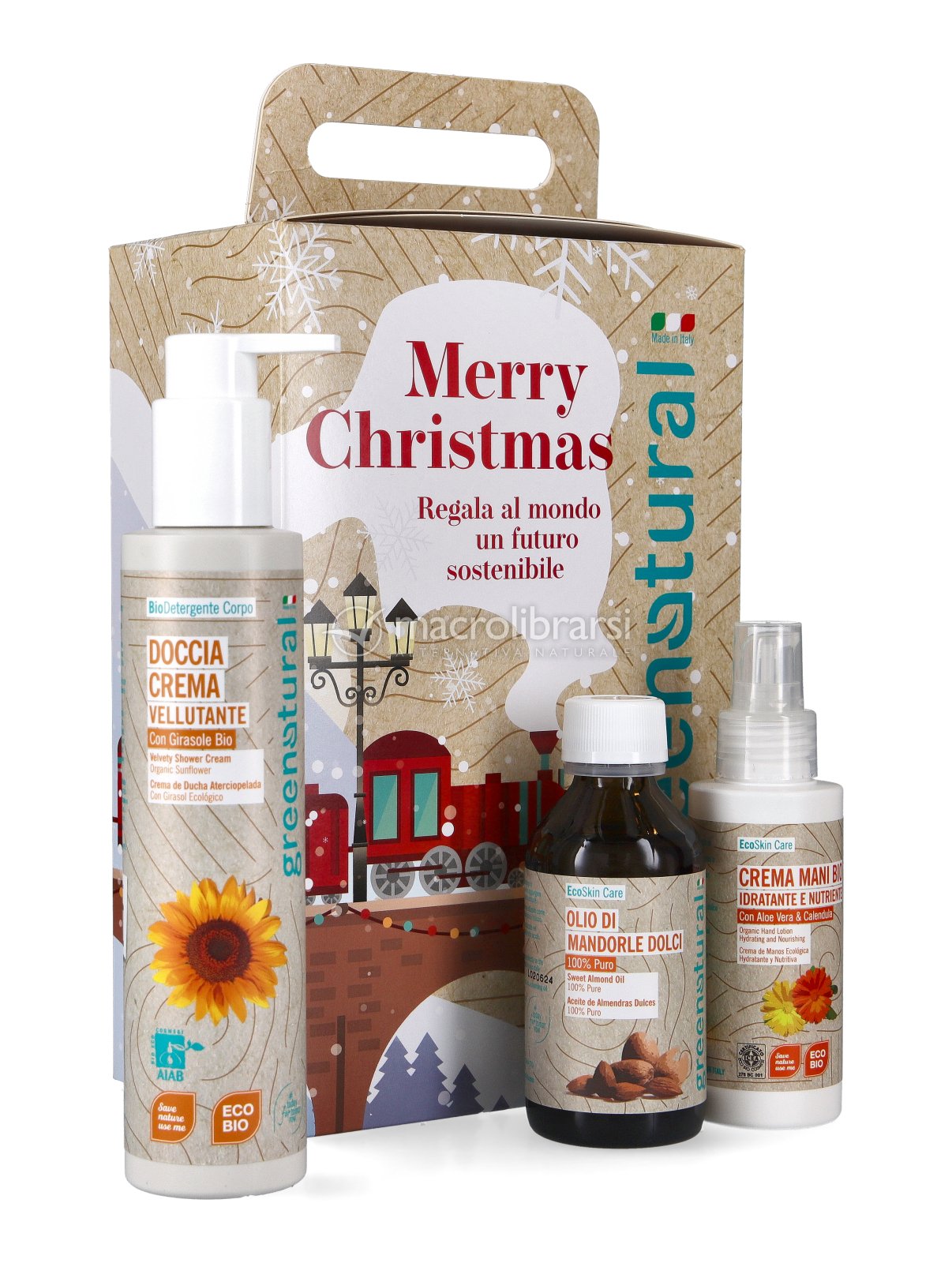 Il Cofanetto regalo GreenNatural Xmas Beauty Polar Express è un regalo ecologico e 100% italiano, che contiene tutto l'essenziale per la cura quotidiana del corpo: