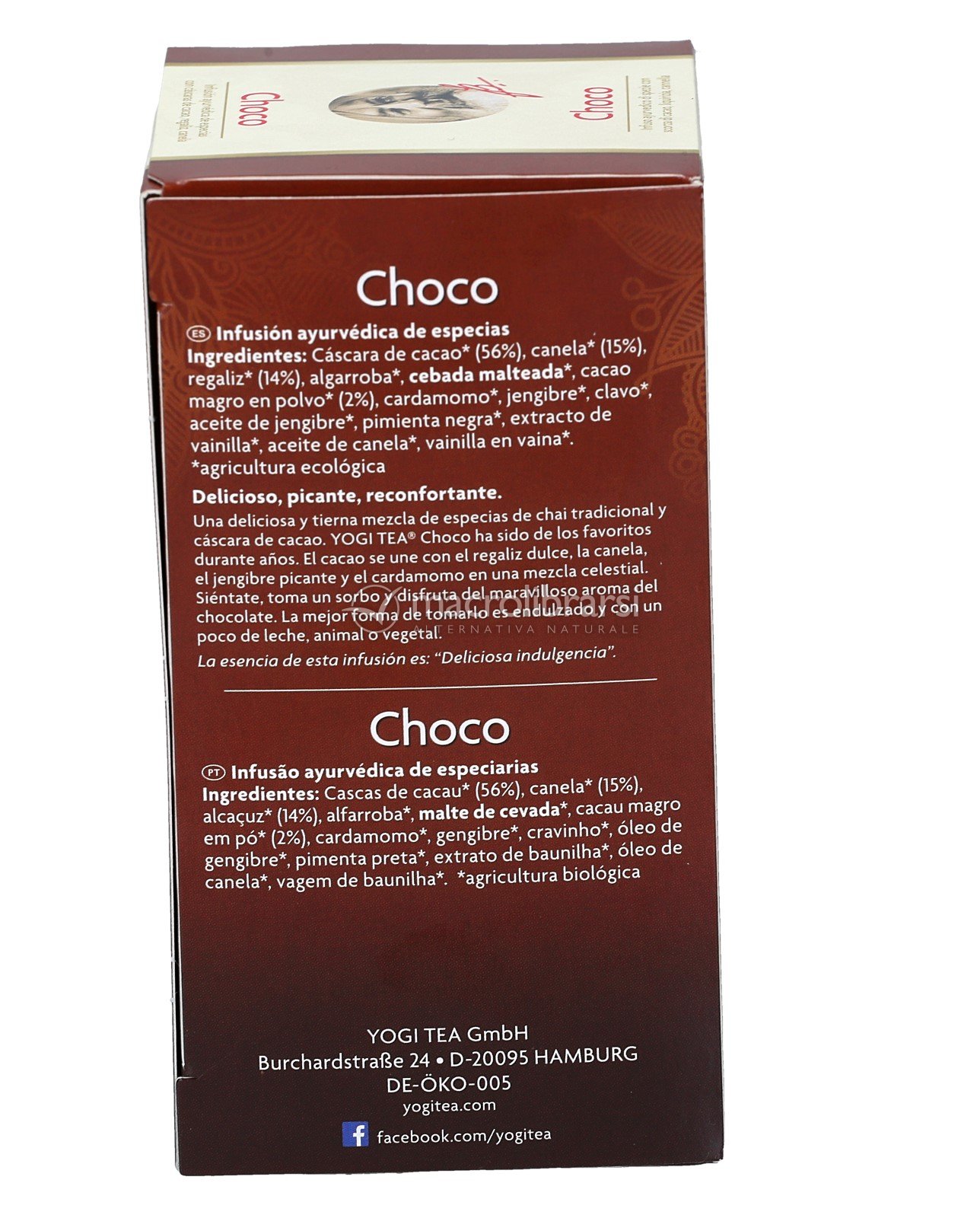 Secondo l’Ayurveda, YOGI TEA® Choco è consigliato per bilanciare Vata e Pitta (VoP+K-), portando calore, stabilità ed energia.