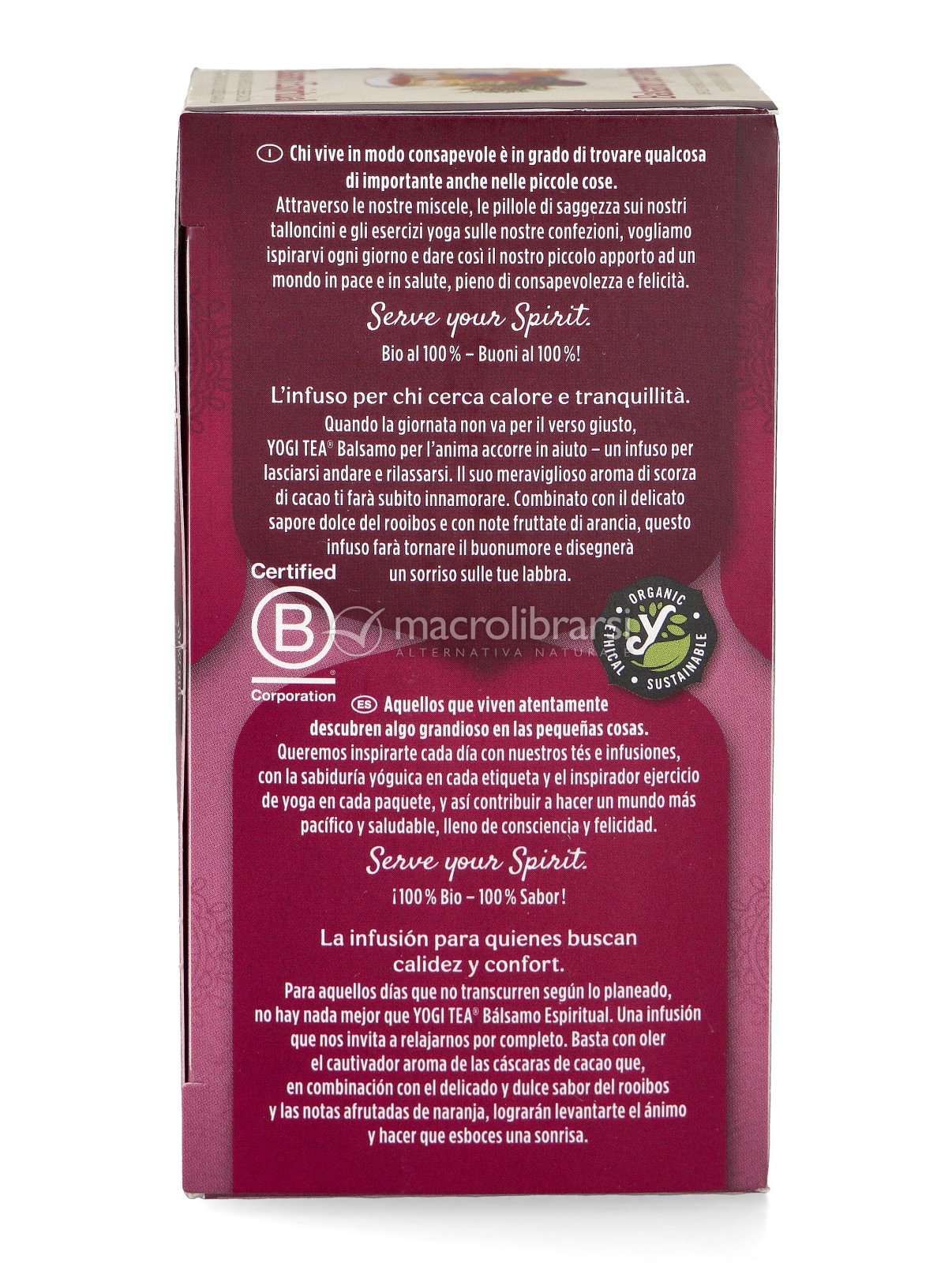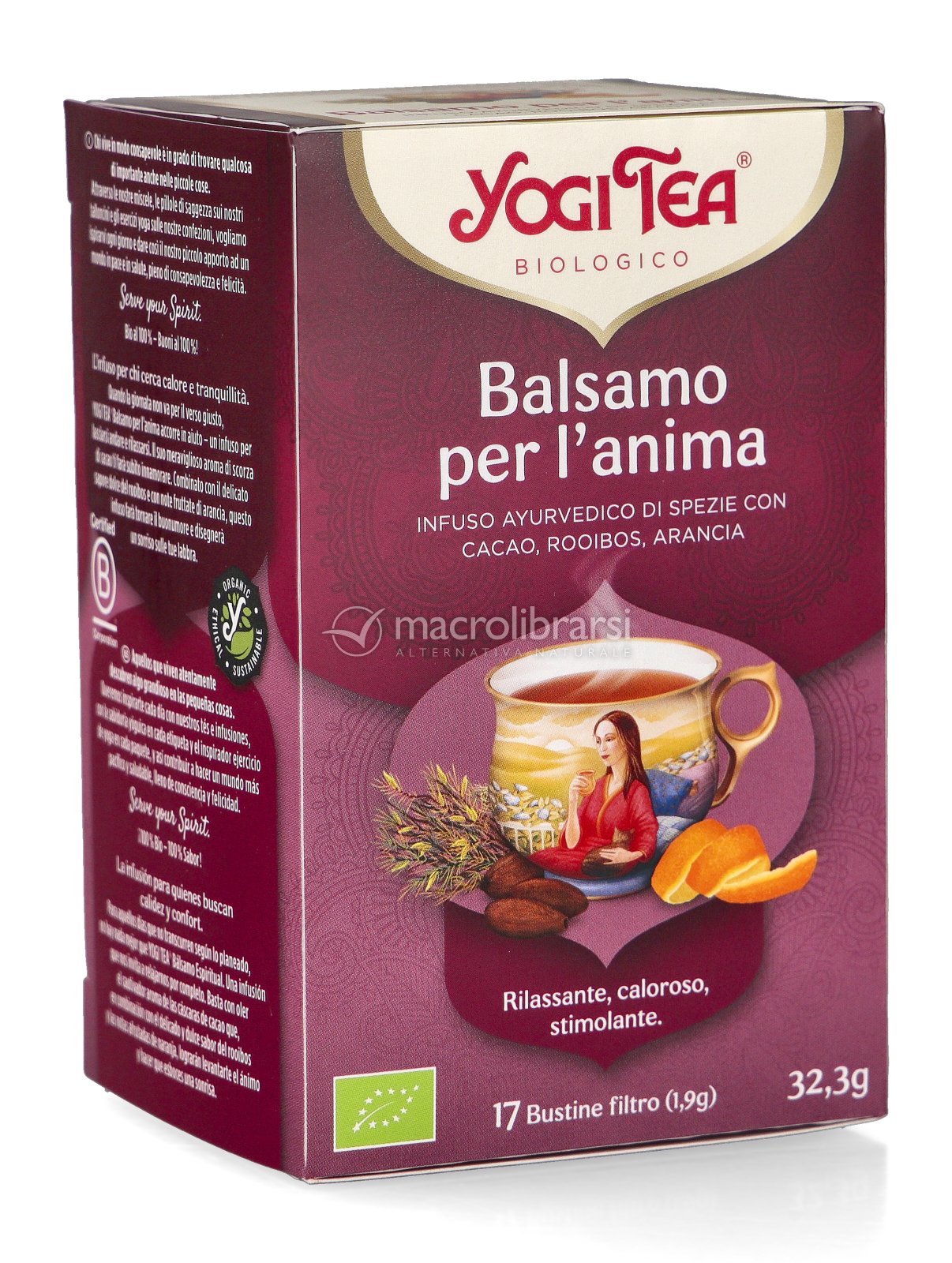 Yogi Tea Balsamo per l'Anima è un'infuso ayurvedico di spezie con cacao, rooibos, arancia.
