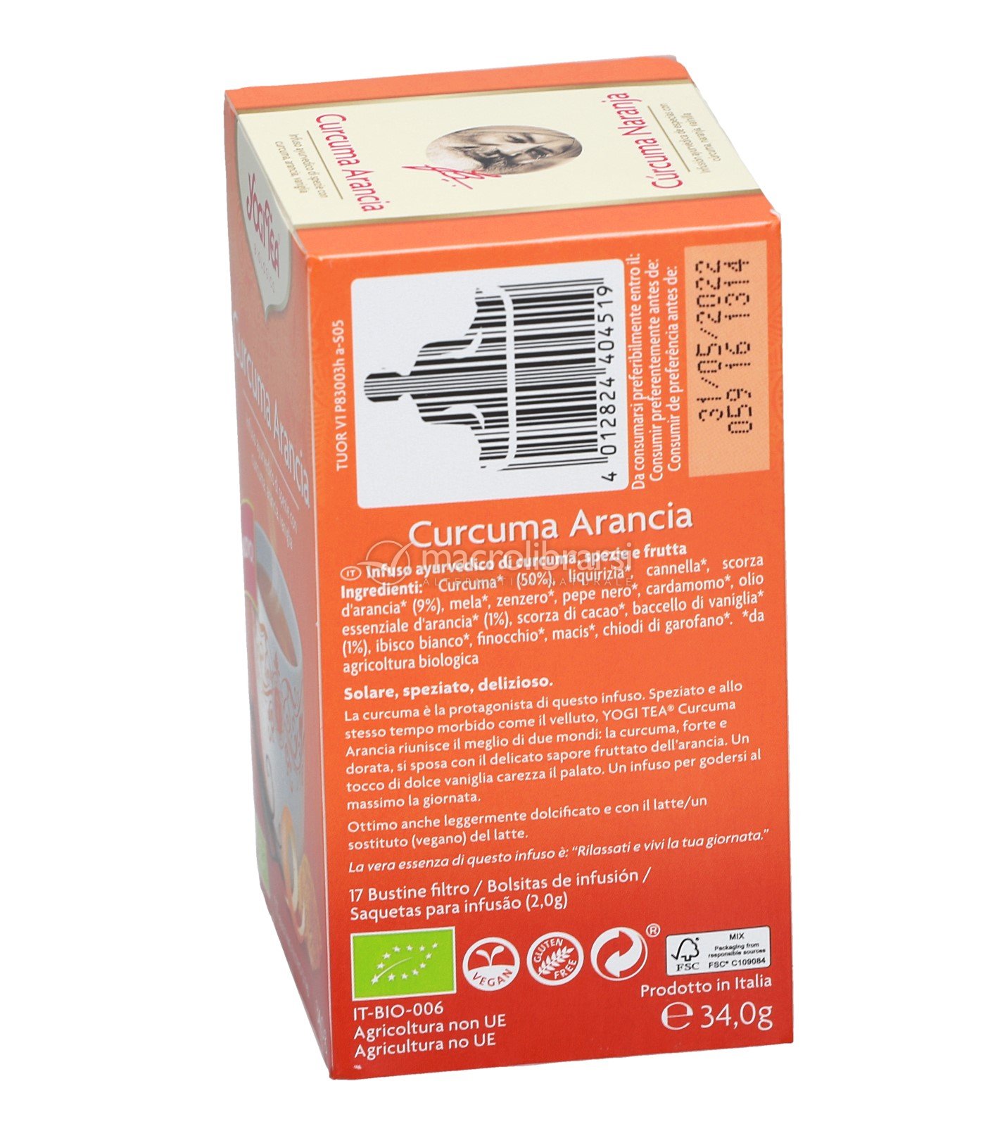 YOGI TEA® Curcuma Arancia riunisce il meglio di due mondi: la curcuma, forte e dorata, si sposa con il delicato sapore fruttato dell’arancia.