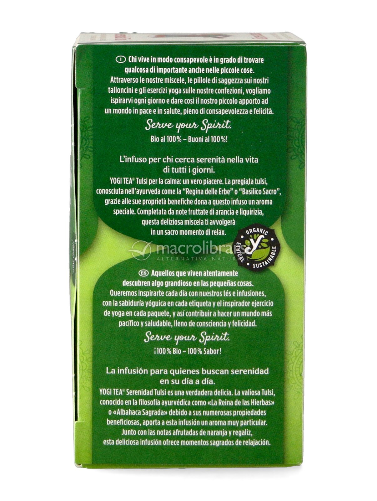 Cercavo disperatamente questa tisana perché incuriosita dal tulsi conosciuto grazie ad un corso di ayurveda. Sono andata in vari negozi ma l'ho trovato solo su Macrolibrarsi e leggendo le recensioni l'ho subito acquistato e ho fatto benissimo. Utile a chi come me è un po' ansioso e durante i periodi più stressanti. Molto piacevole da bere.