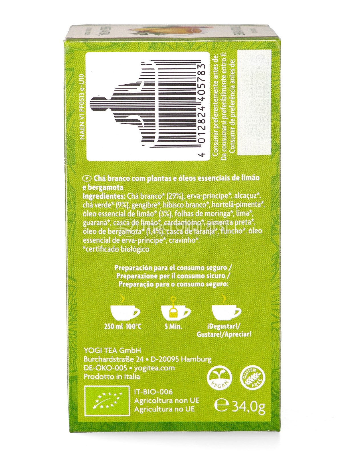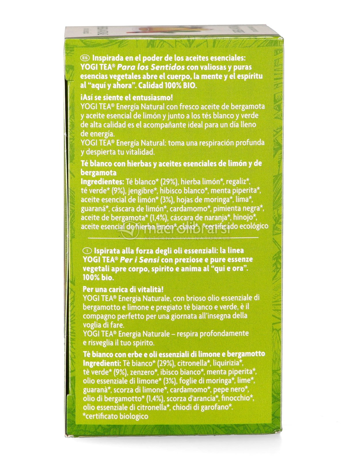 YOGI TEA® Natural Energy con olio piccante di bergamotto e limone e tè bianco e verde di prima qualità è il compagno perfetto per una giornata all'insegna del dinamismo.