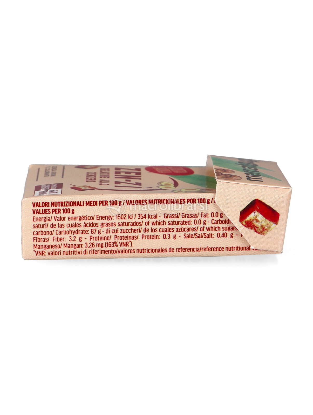 Zenzero 35%, Zucchero integrale di canna, Zucchero di canna, Sciroppo di glucosio fruttosio, Addensante: carragenine. Acidificante: Acido citrico.