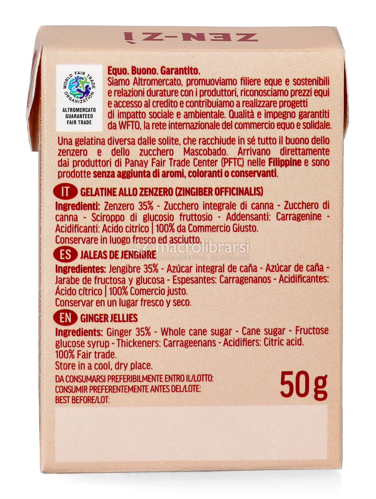 Contengono ben il 50% di zenzero e zucchero integrale di canna Mascobado e sono prodotte senza aggiunta di coloranti o aromi.