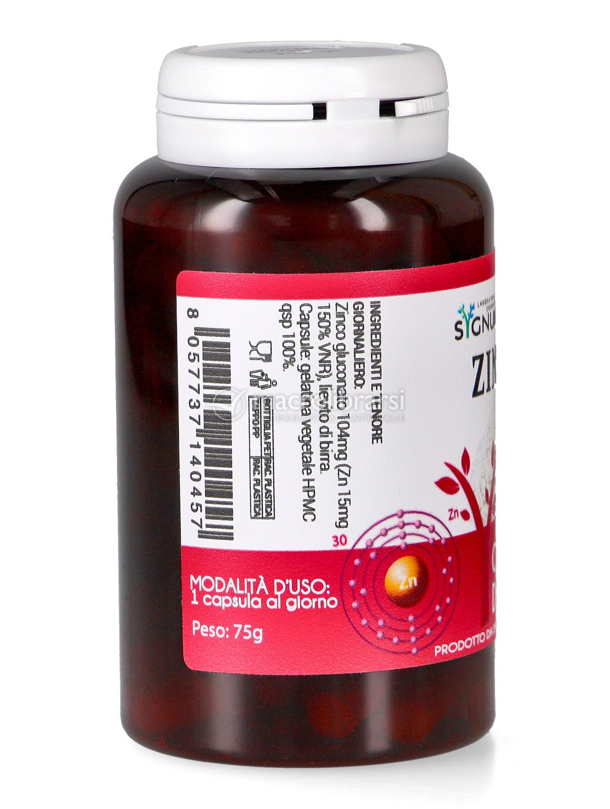 Zinco di Sygnum è un integratore alimentare in capsule che contiene 15 mg di zinco per dose giornaliera, il 150% dei Valori Nutritivi di Riferimento (VNR).
