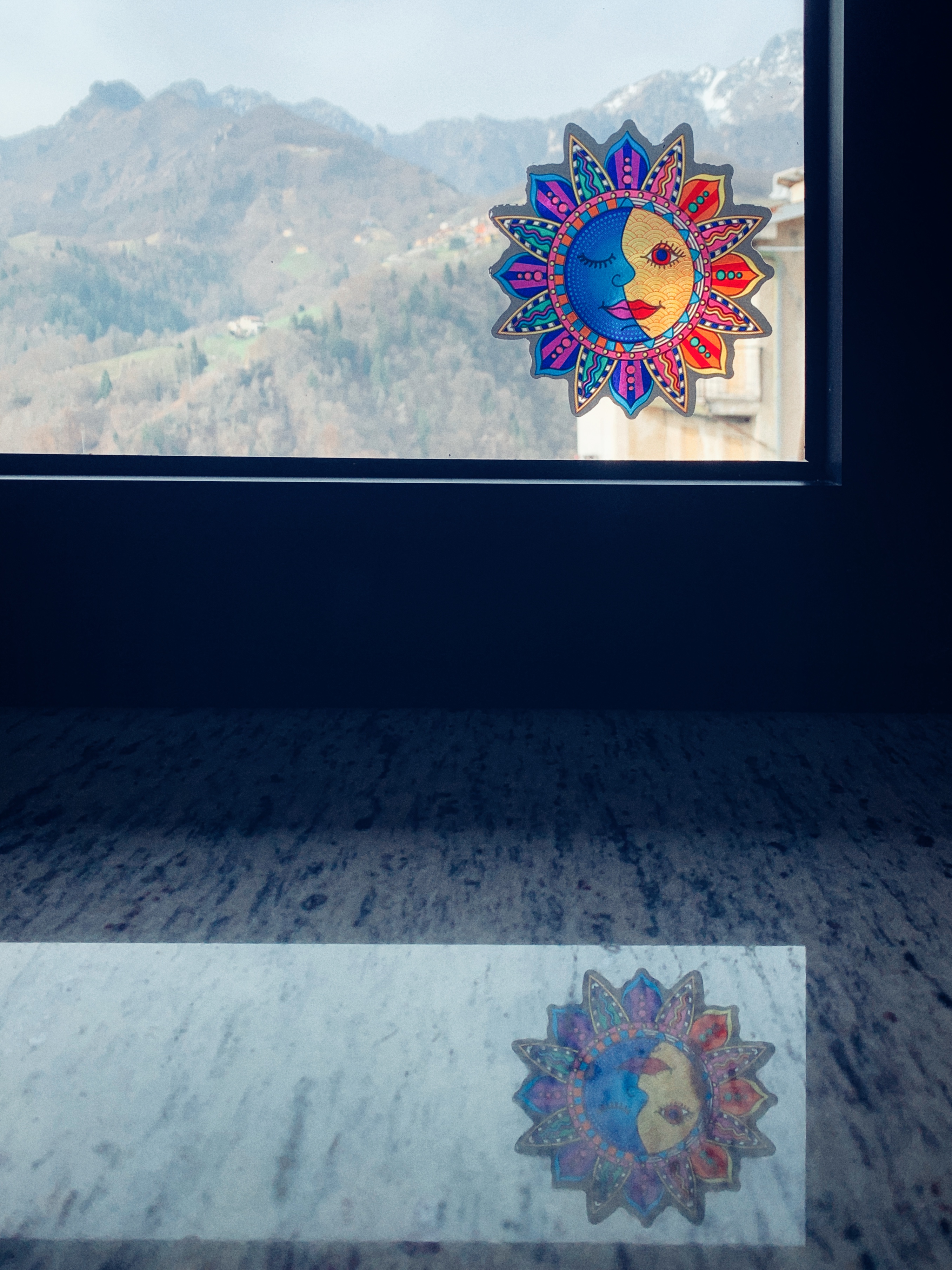 E' stato un regalo molto molto apprezzato sia per l'om, che per i colori ed il fatto che messo sul vetro rilascia oltre all'immagine questi bei colori; sono molto soddisfatta che sia piaciuto tanto ( anche io ne uno...del sole/luna ed anche se non prende il sole la finestra, lo trovo comunque molto bello sul vetro )