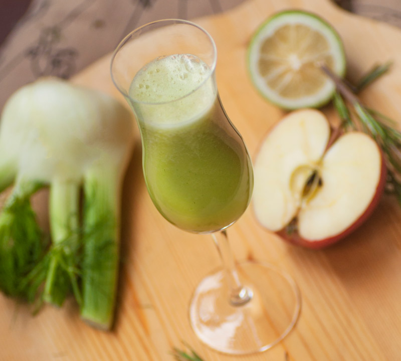 - Estraete i finocchi, la mela, il limone, le foglie di rosmarino.