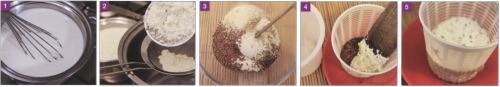 - Mettere 2 cucchiai di semi di lino sul fondo della fuscella, versarvi anche il contenuto della ciotola e schiacciare ben bene con un cucchiaio per far fuoriuscire il siero rimanente.