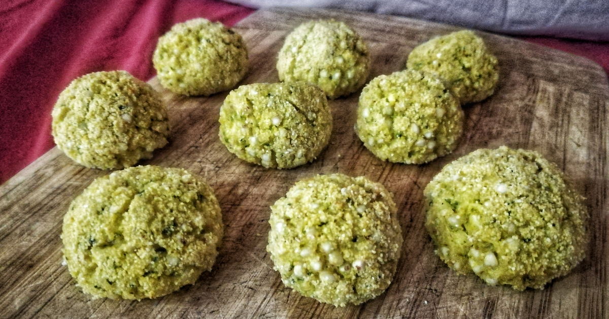 A questo punto mettete la restante farina di mais in un piatto, create con le mani umide le vostre polpette e ripassatele nell’impanatura. Disponetele su una teglia ricoperta da carta forno leggermente oleata e cuocete a 180 °C per circa 12 minuti.