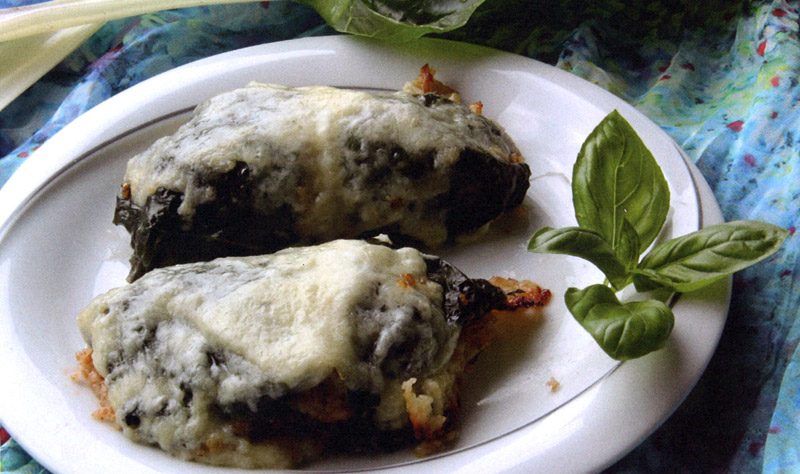 Aprire le foglie e stenderle delicatamente. Unire i gambi al composto per il ripieno aggiungendo se necessario un po' di brodo e distribuire sulle foglie. Arrotolare le foglie ripiene e disporle in una fila irrorando con il brodo rimasto.