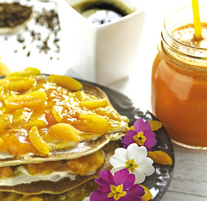 Perché la colazione sia completa potete consumare con queste crepes proteiche e nutrienti un estratto di pesca, carota e lime e un caffè di cicoria.