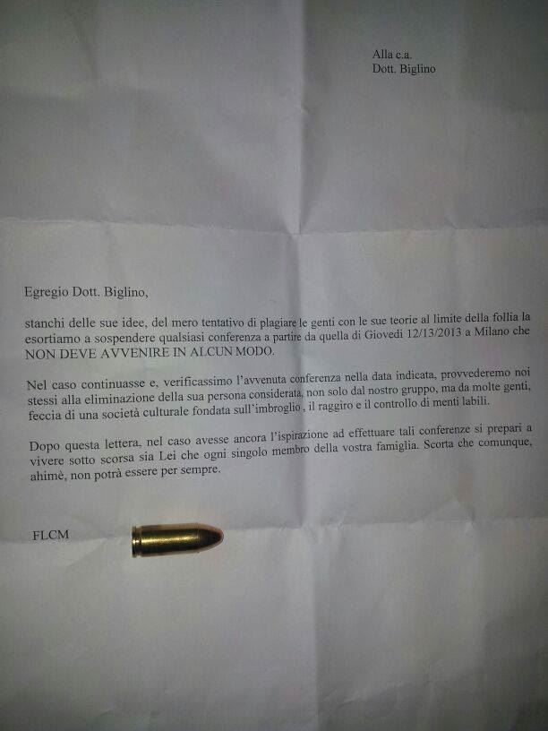 Oggi è pervenuta nei nostri uffici la notizia shock relativa all'arrivo di minacce di morte verso il nostro autore Mauro Biglino.